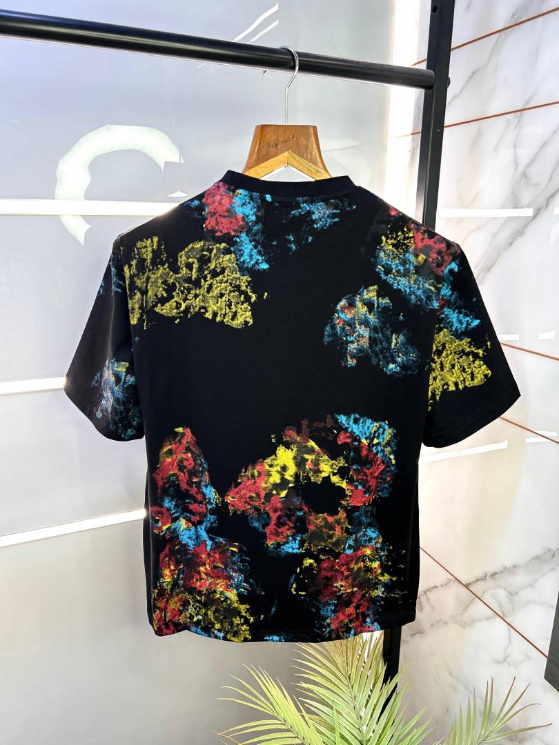 Amir i Floral Print Black Drop Shoulder Premium Round Neck T-shirt 1447