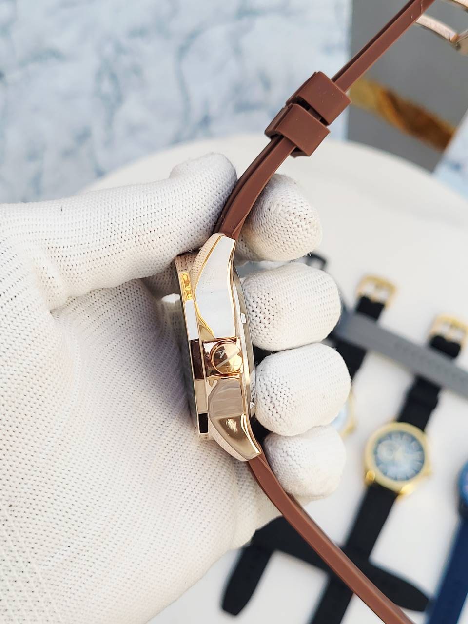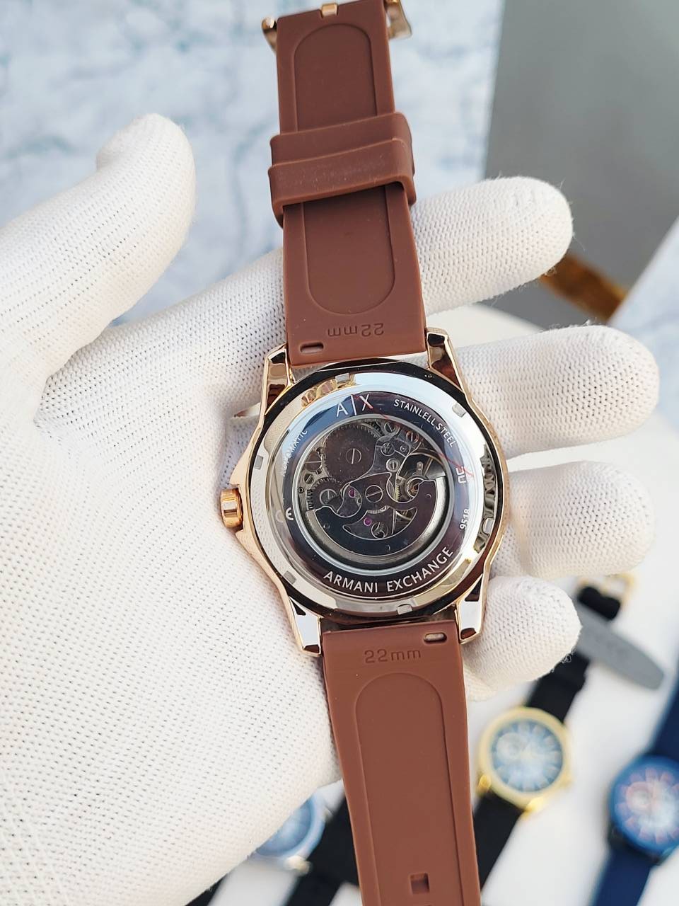 ARMANI EXCHANGE AUTOMATIC FULL BROWN FIBER BELT
