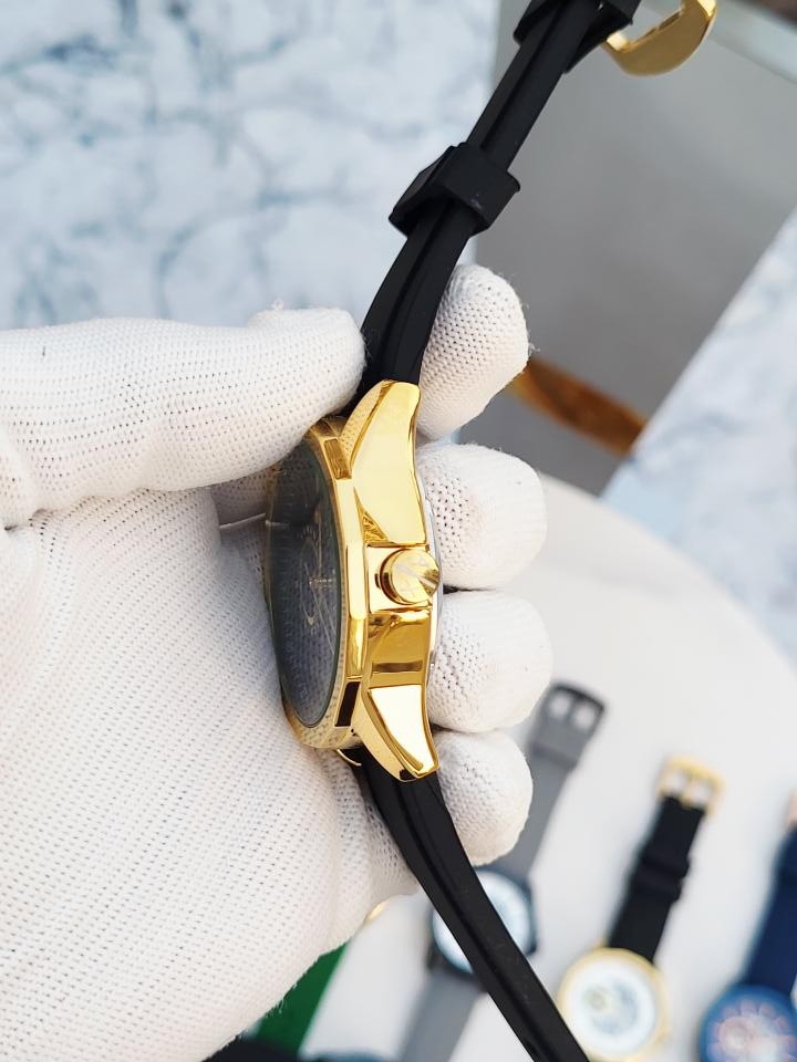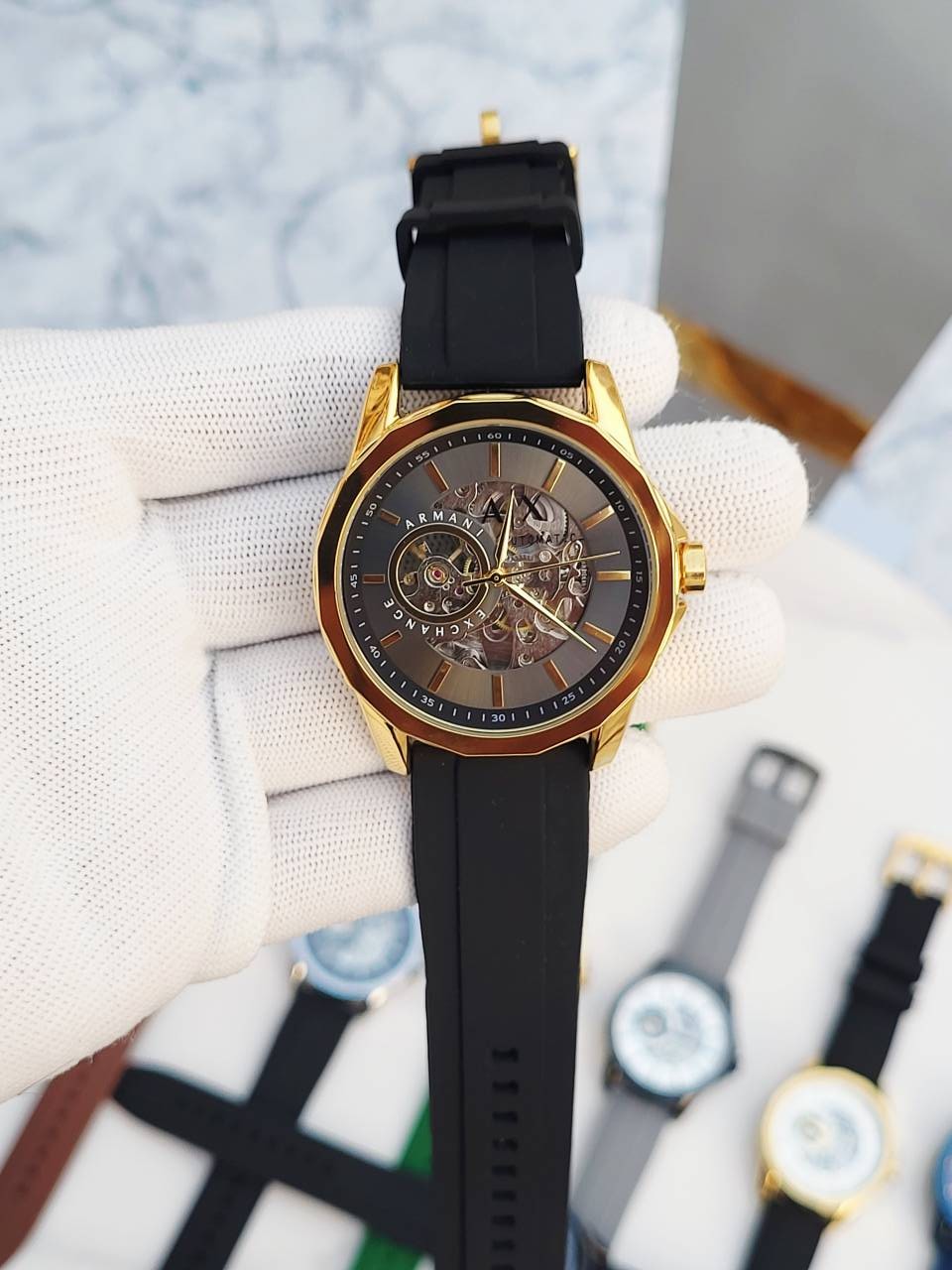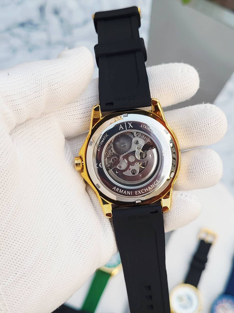 ARMANI EXCHANGE AUTOMATIC BLACK FIBER BELT GOLD BODY BLACK DIAL