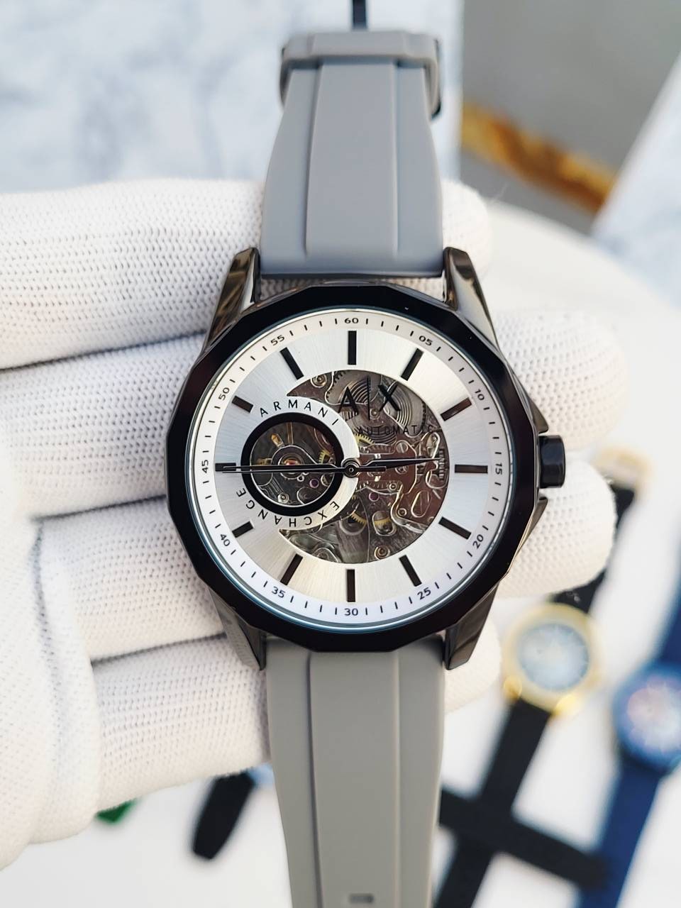 ARMANI EXCHANGE AUTOMATIC GREY FIBER BELT WHITE DIAL