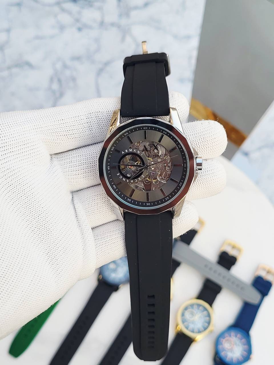 ARMANI EXCHANGE AUTOMATIC BLACK FIBER BELT SILVER BODY