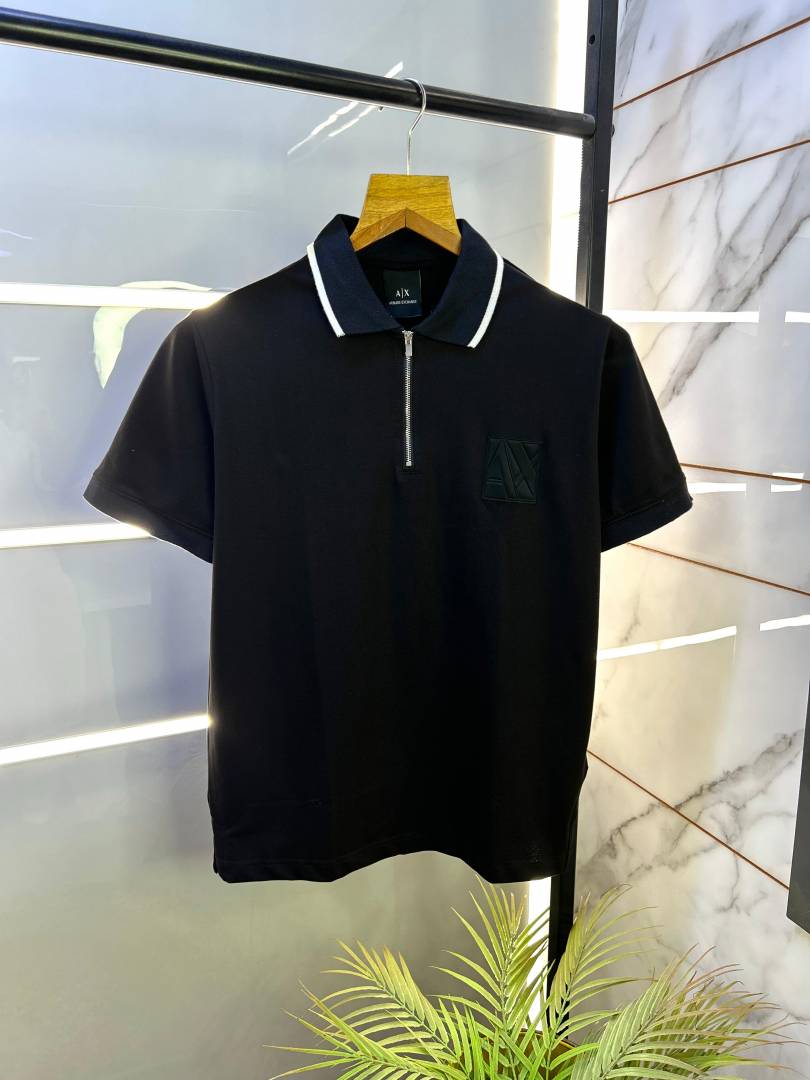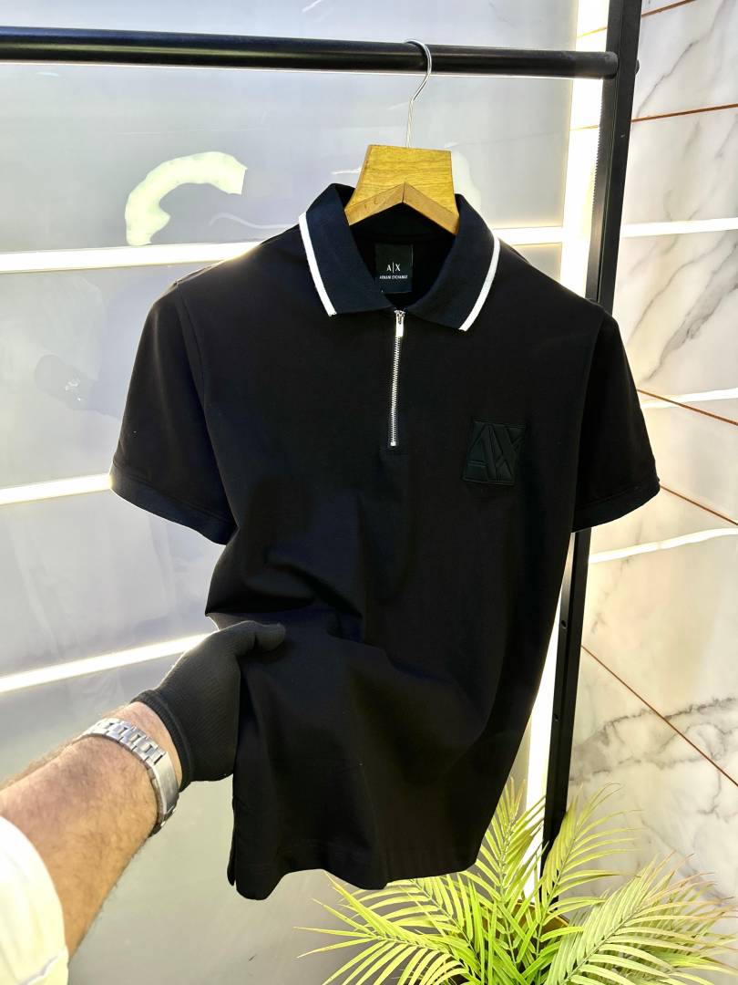 Arman_i Exchange Black Zipper Premium Polo Collar Neck T-shirt F2801-BL