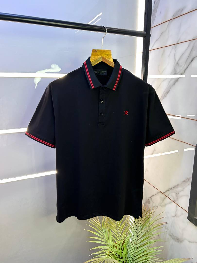 Aston Martin Hacket t Black Polo Embroidery Logo Premium Collar Neck T-shirt F2595-BL