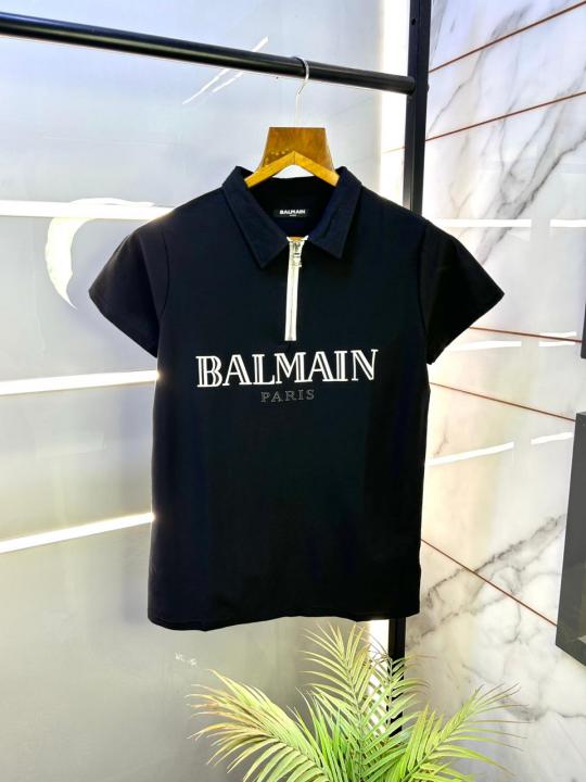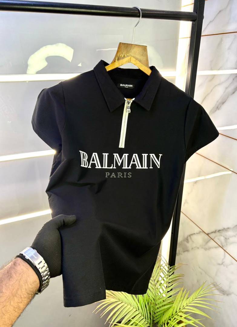 Balmai n Paris Imported Zipper Black Collar Neck Premium Polo T-shirt F3114-B1