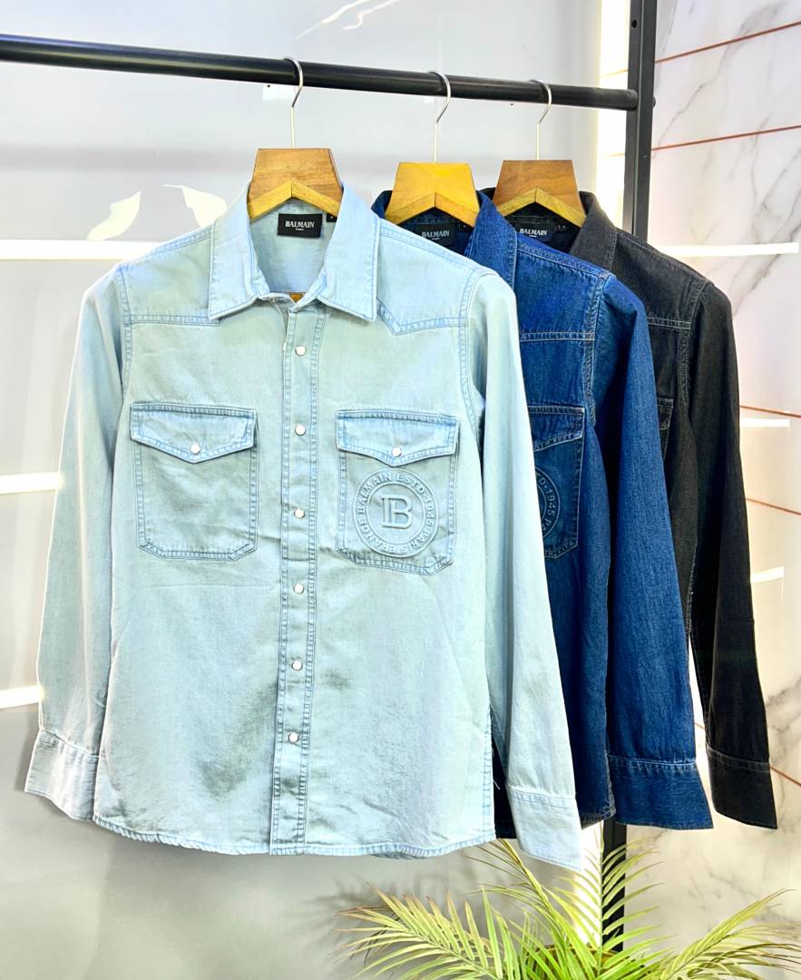Balmai n Paris Logo Blue Super Premium Denim Shirt F2732-B4