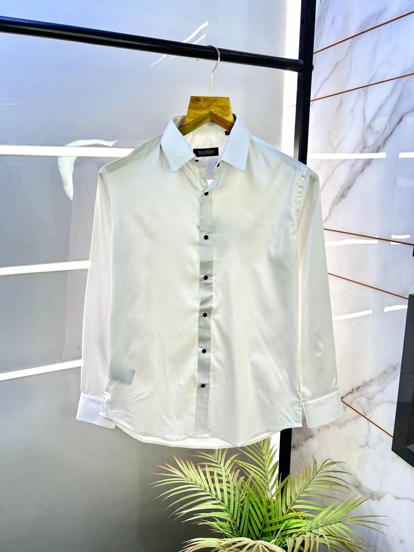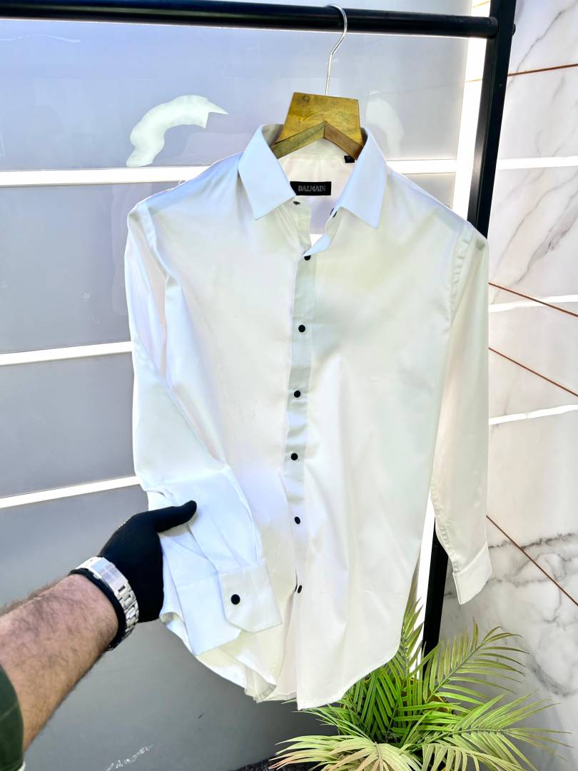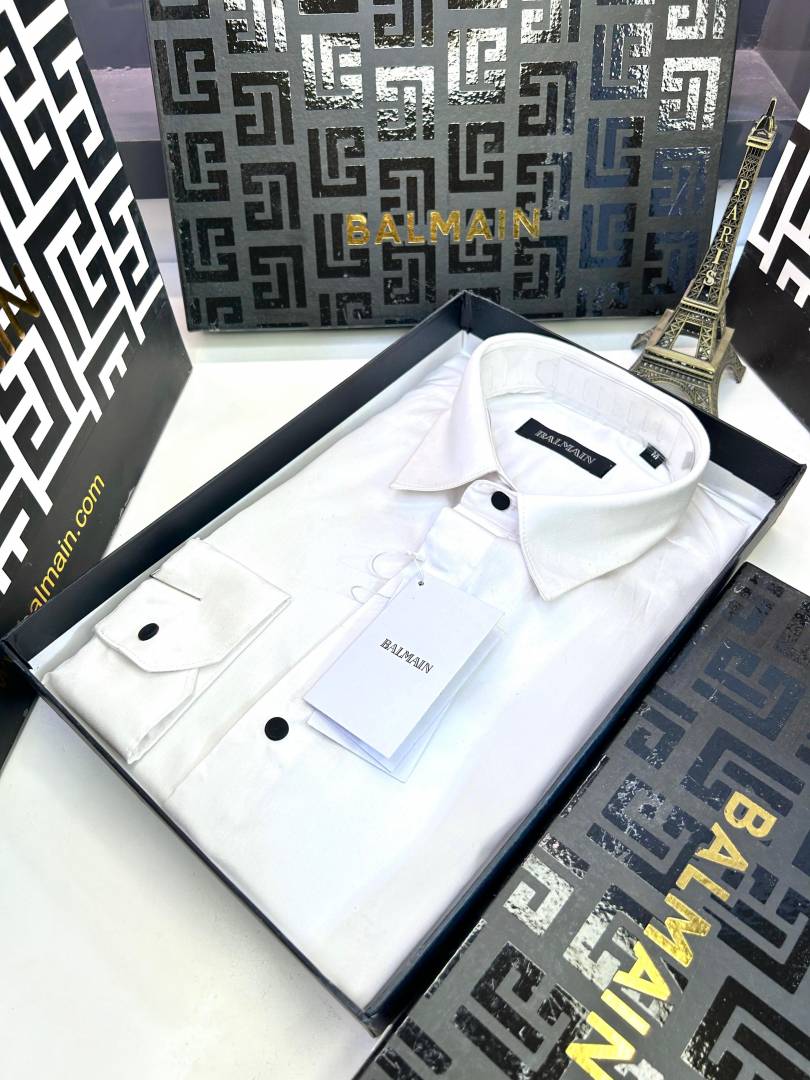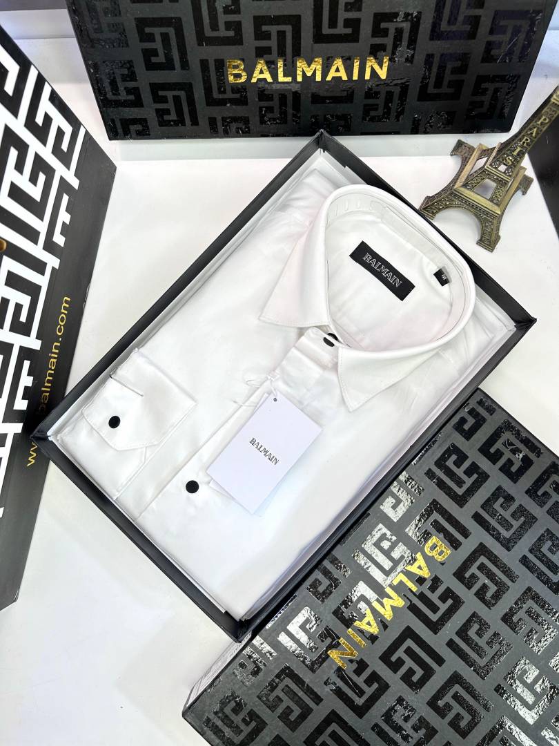 Balmai n Paris Logo White Premium Shirt With Brand Box Packing And Carry Bag F3076-WH