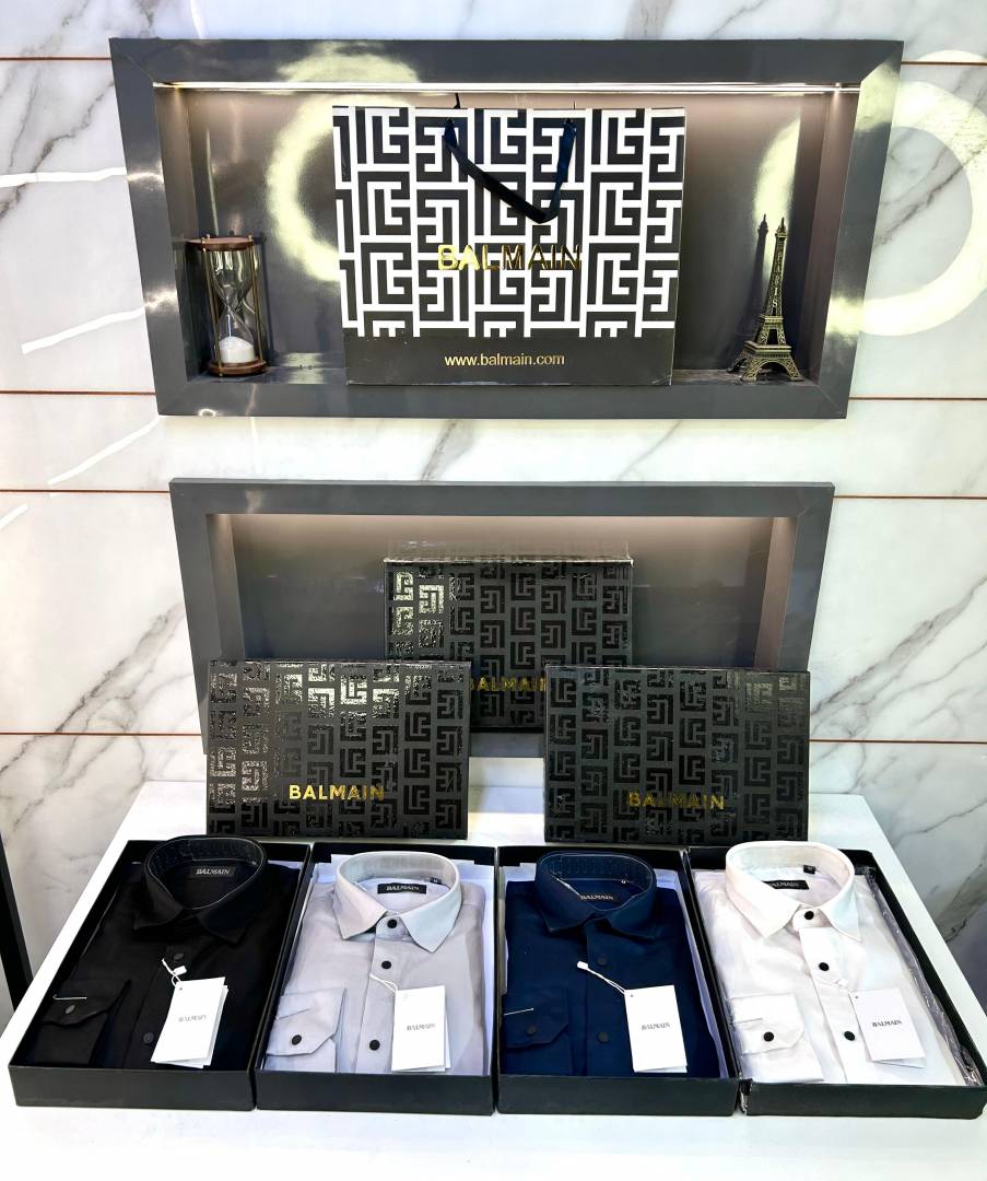 Balmai n Paris Logo Black Premium Shirt With Brand Box Packing And Carry Bag F3076-BL