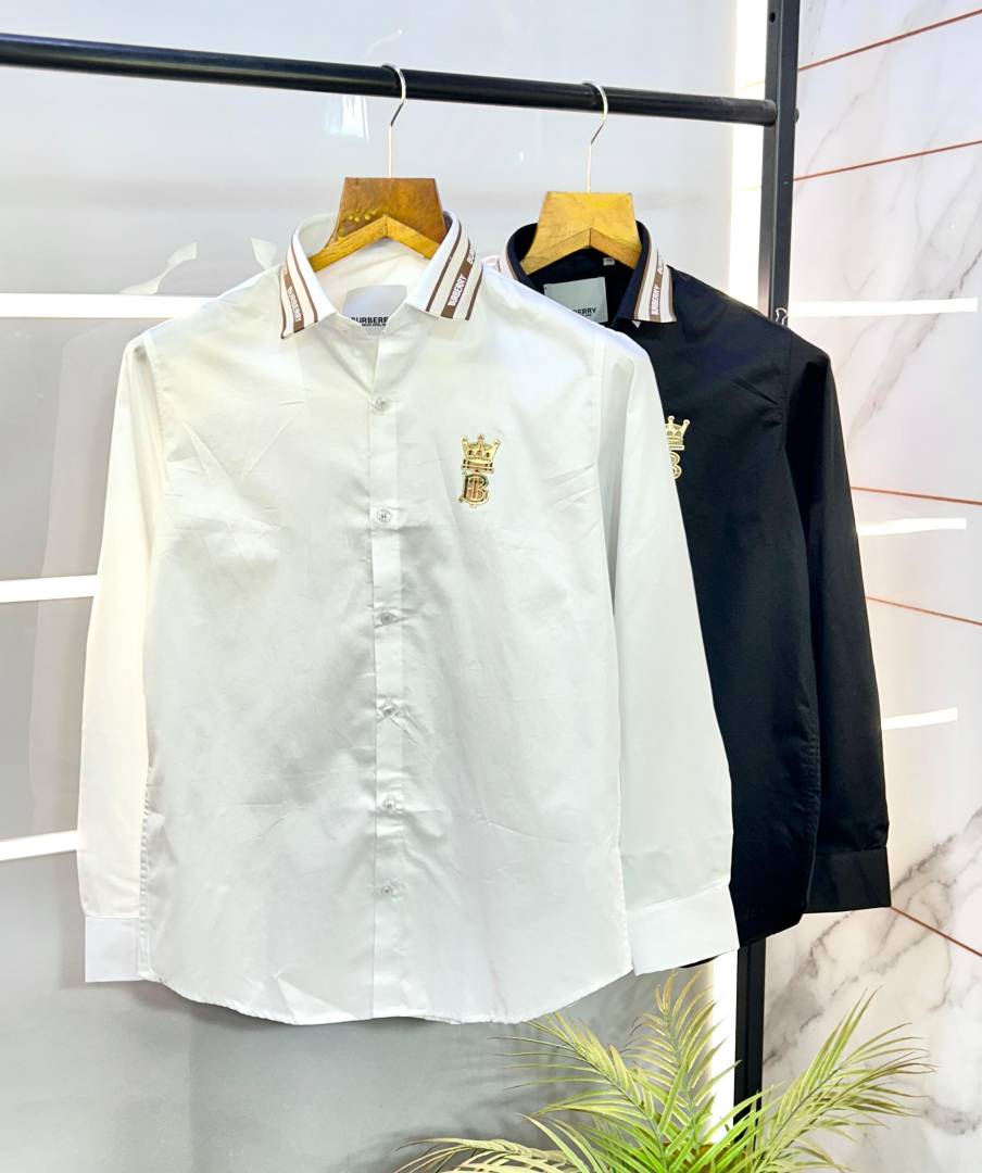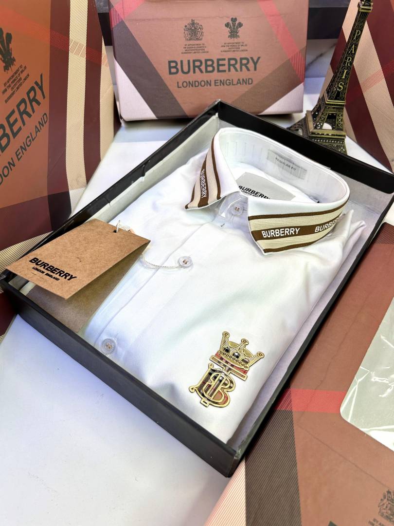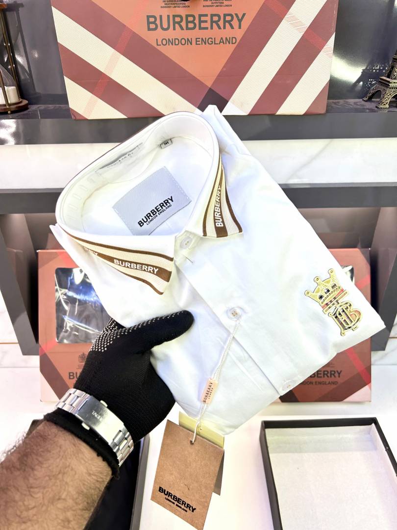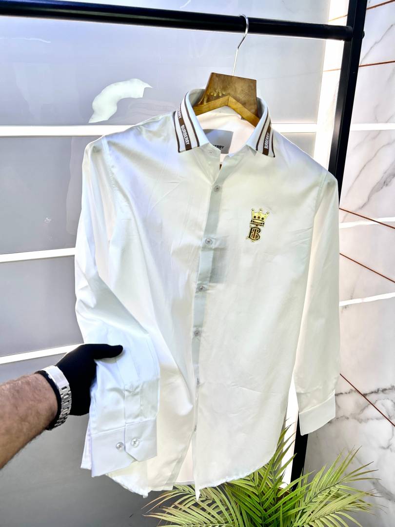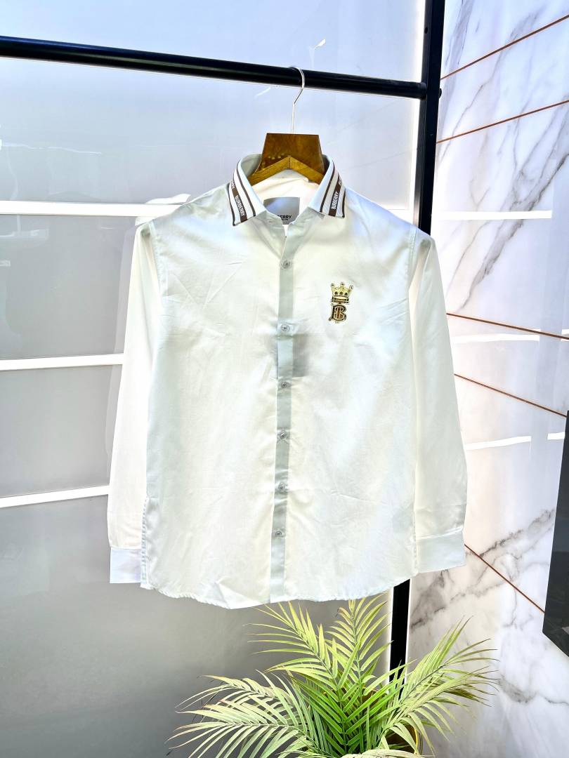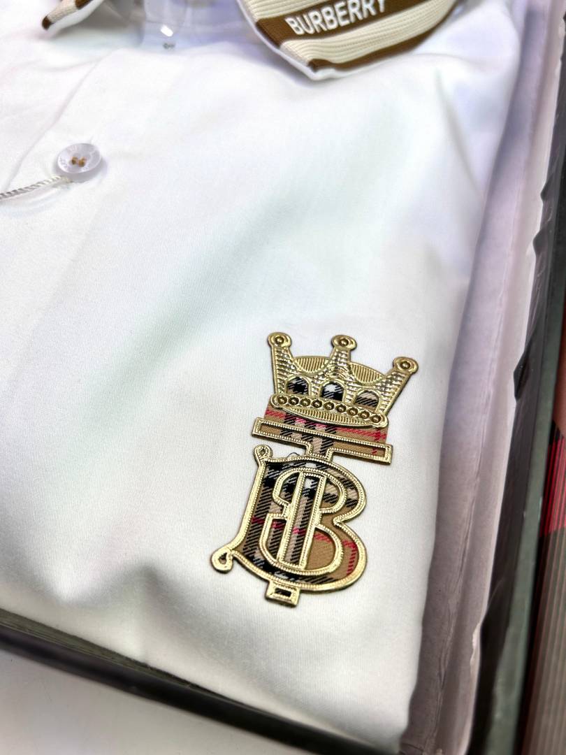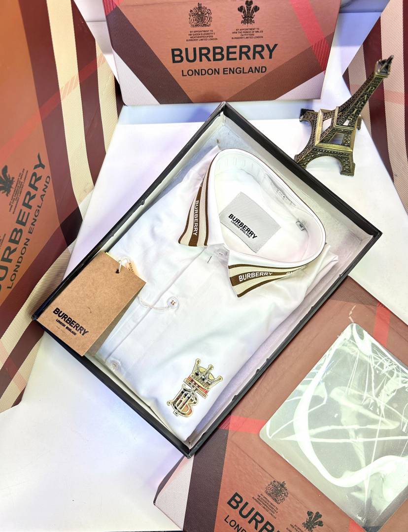 Burberr y Logo White Premium Shirt With Brand Box Packing and Carry Bag F2690-WH