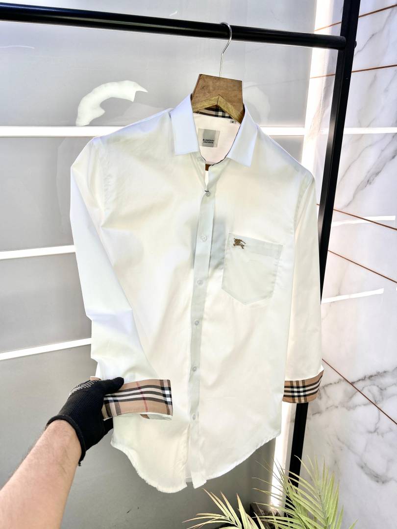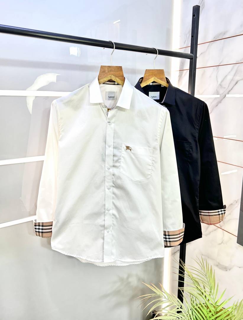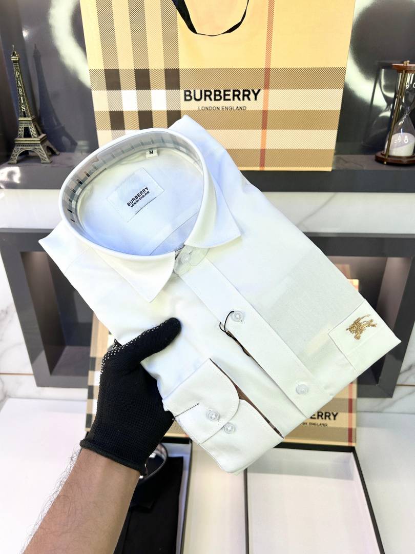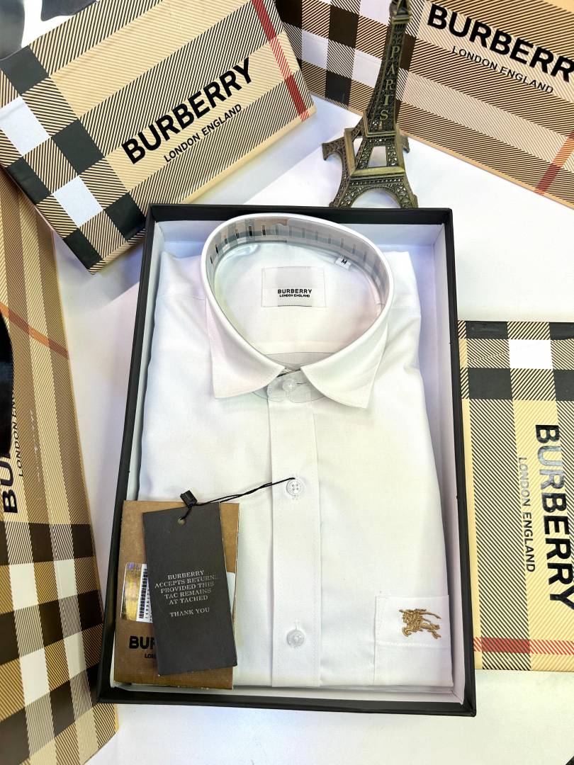 Burberr y White Embroidery Logo Premium Shirt With Brand Box Packing and carry bag F2283-WH