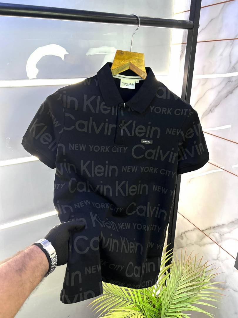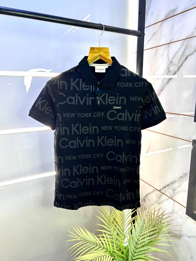 Calvin_Klein Black Polo Premium Collar Neck T-shirt With Brand Box Packing F2213-BL