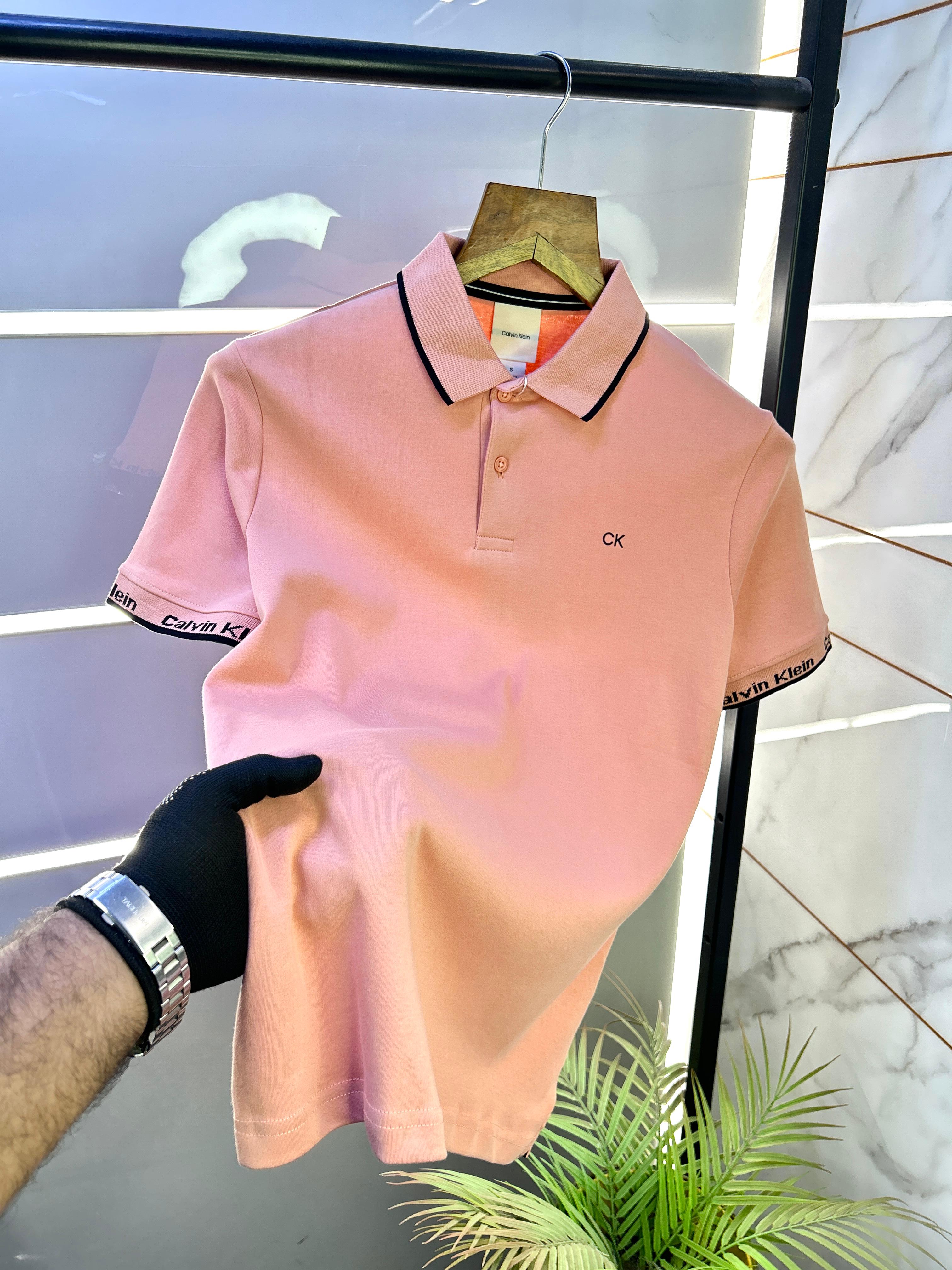 Calvin_Klein Pink Premium Collar Neck Polo T-shirt F2874-PI