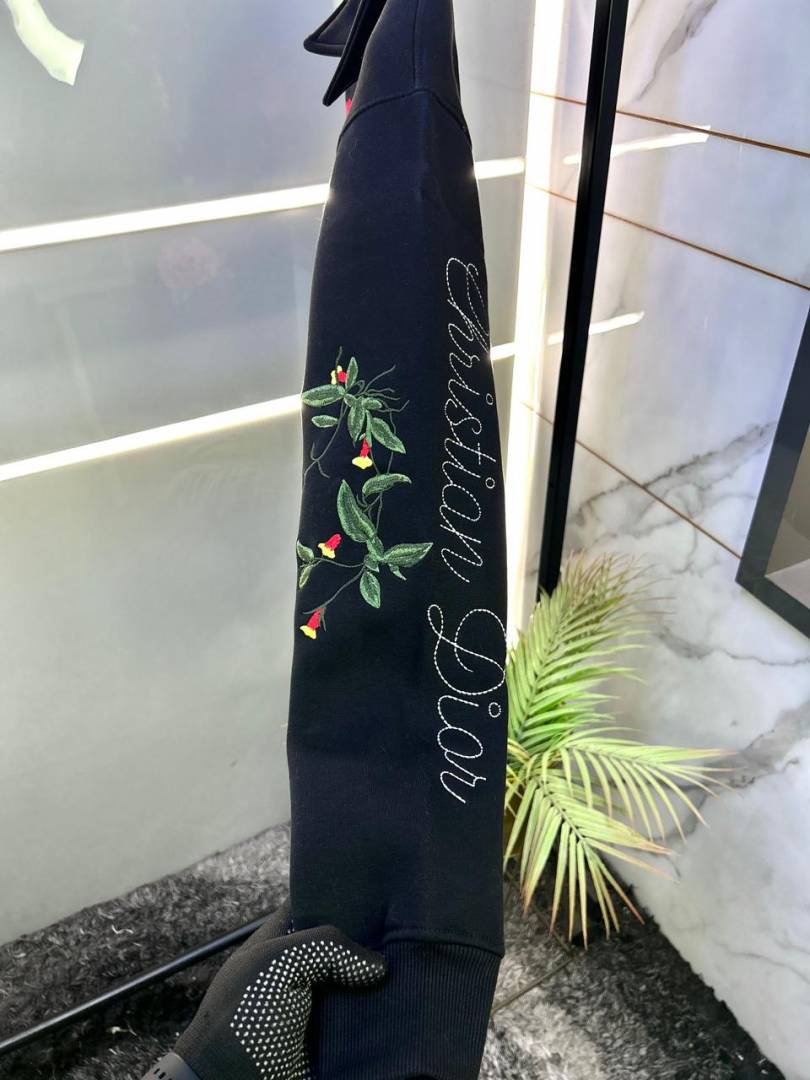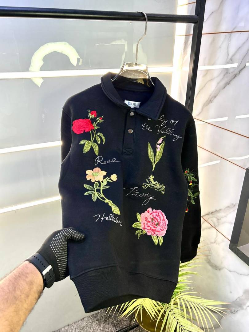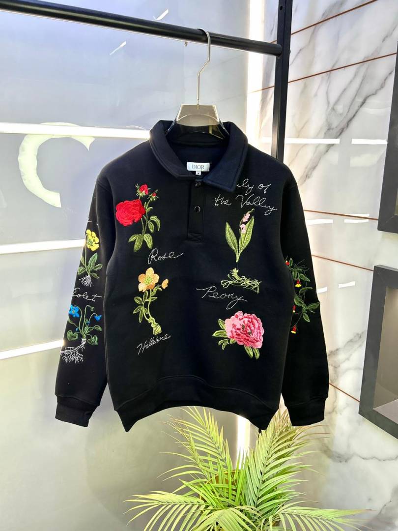 Christian Dio r Imported Allover Embroidery Print Premium Black Sweatshirts F3230-BL