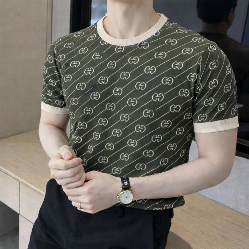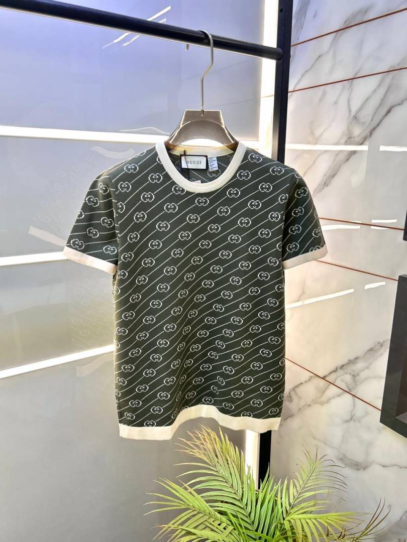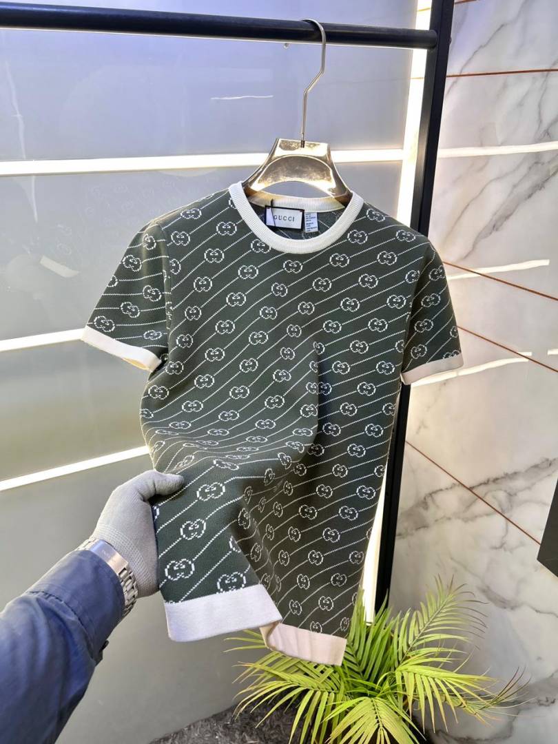 Gucc i Imported Monogram Green knitted Super Premium Round Neck T-shirt F3511-GR