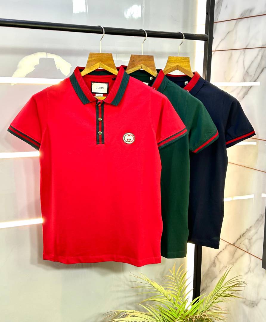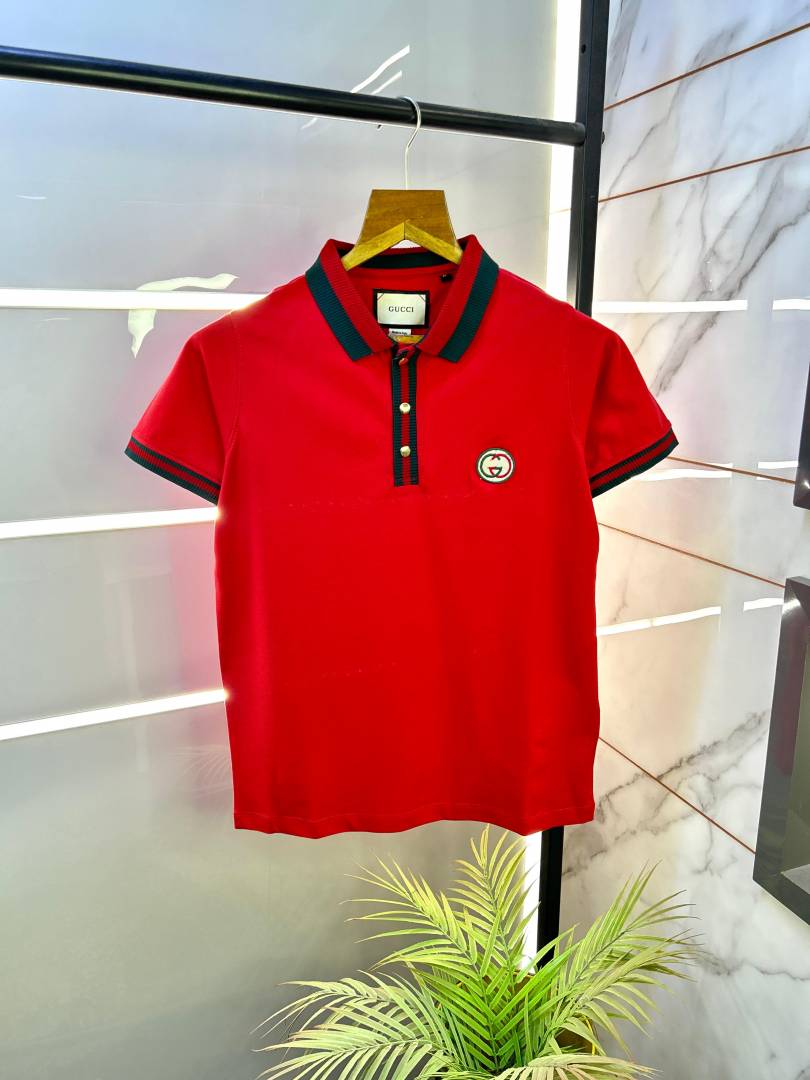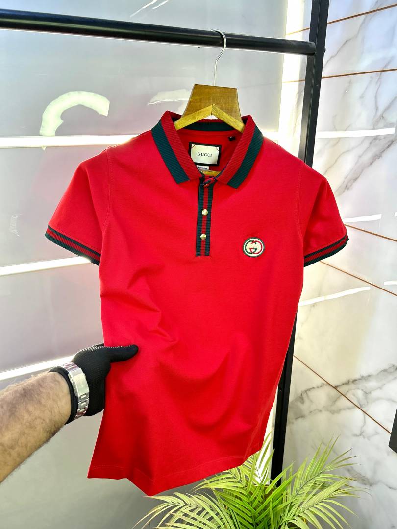 Gucc i Red Polo Embroidery Logo Premium Collar Neck T-shirt F2681-RE