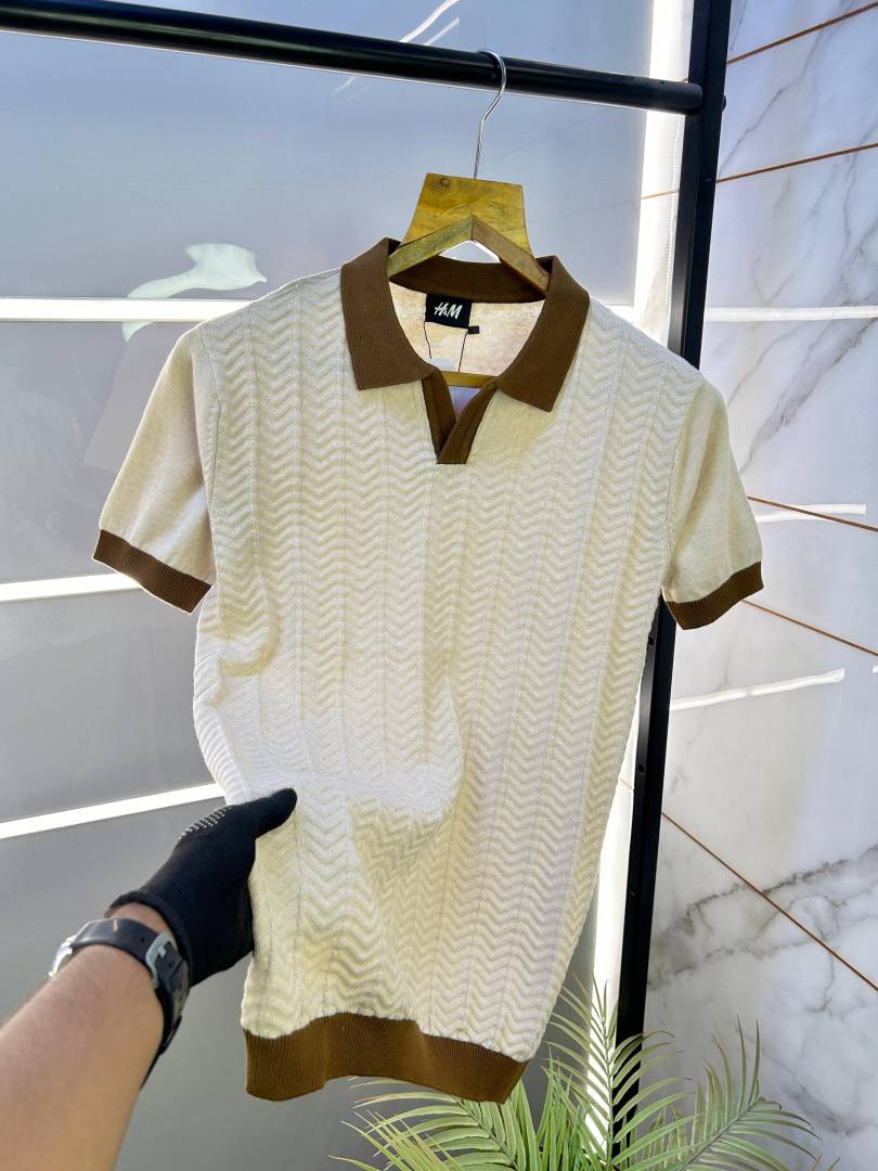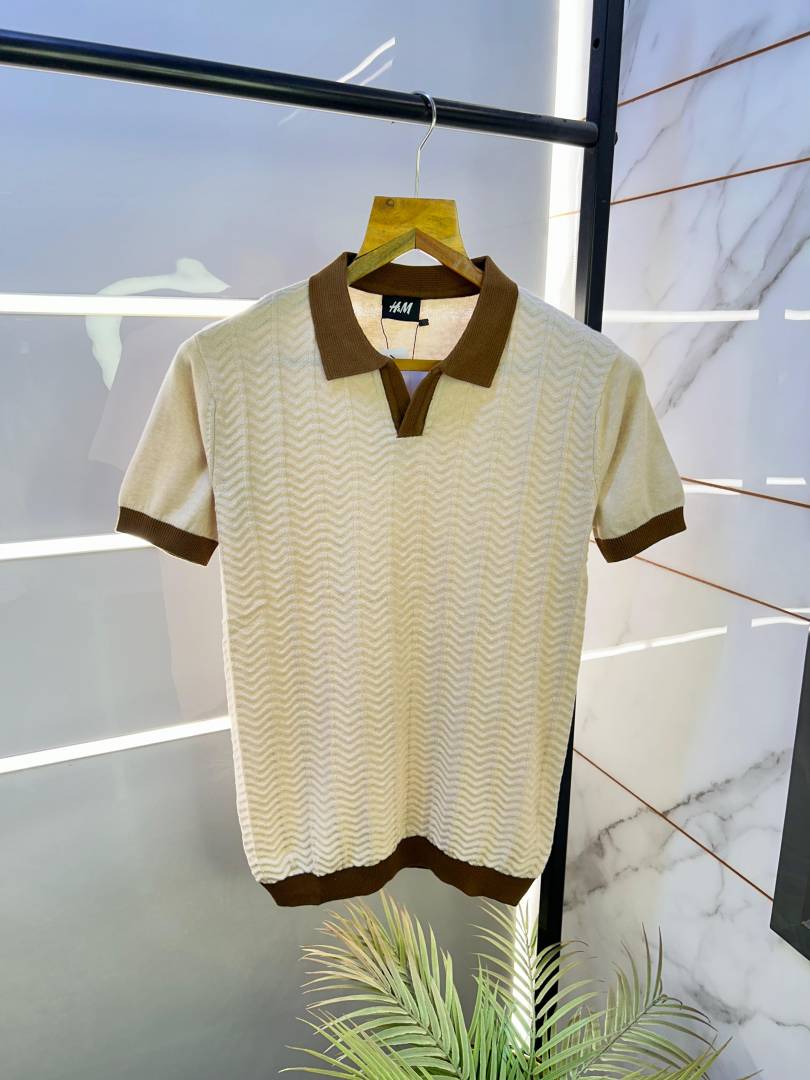 H & M Knitted Polo Beige Super Premium Collar Neck T-shirt F2624-BE
