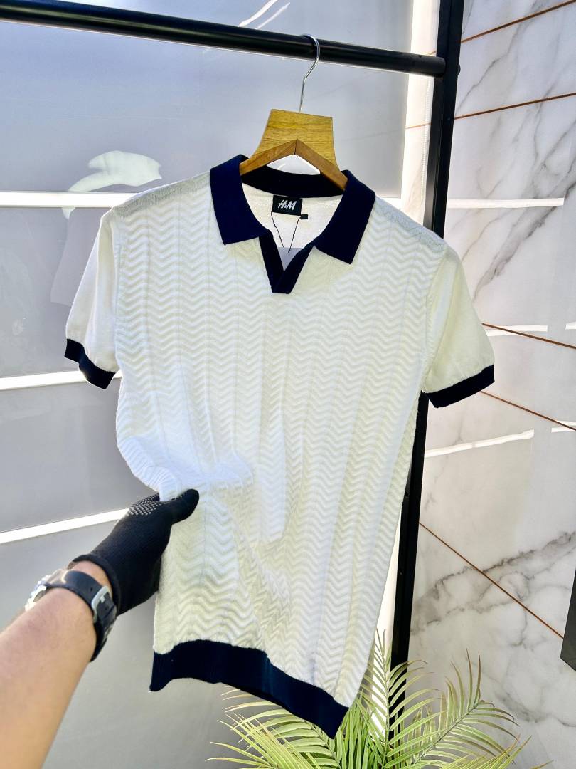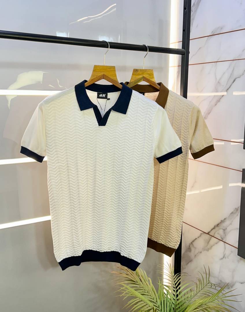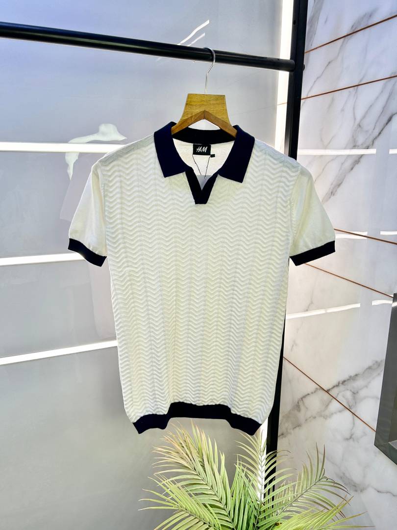 H & M Knitted Polo White Super Premium Collar Neck T-shirt F2624-WH