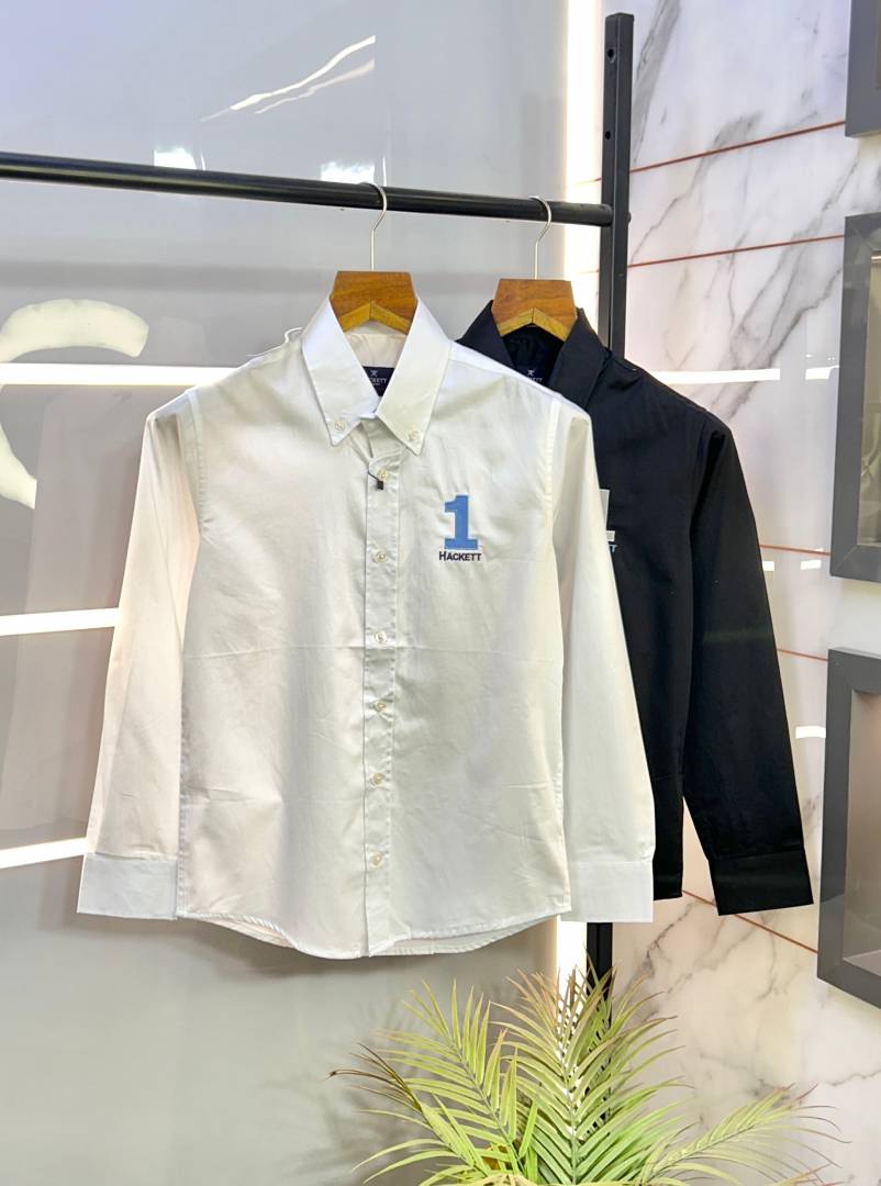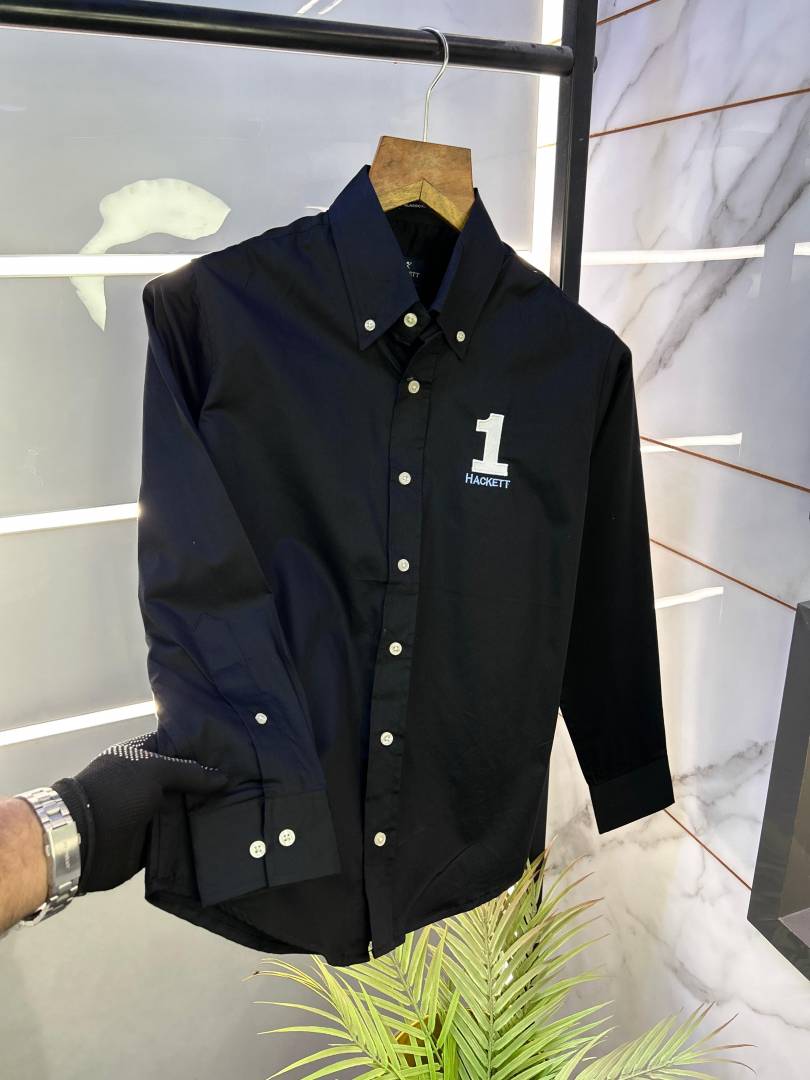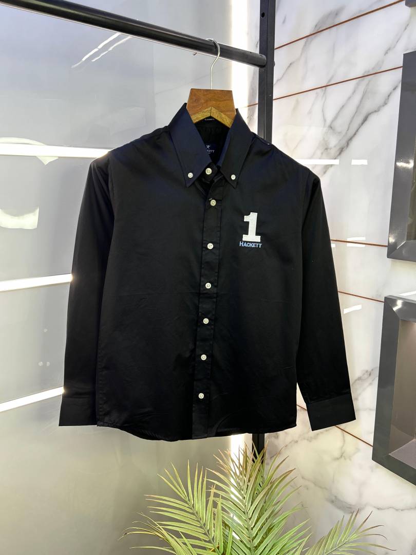 Hacket t Black Oxford Lycra Embroidery Logo Premium Shirts F2617-BL