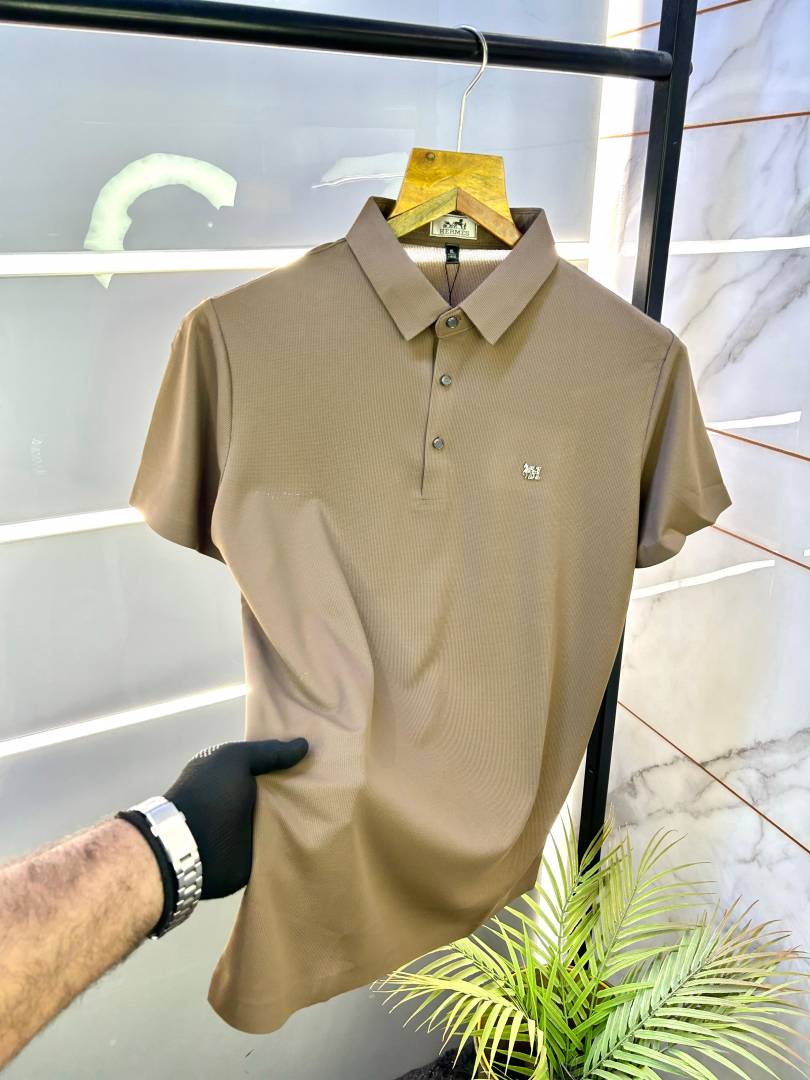 Hermes Brown Polo Imported Collar Neck T-shirt F2693-BR