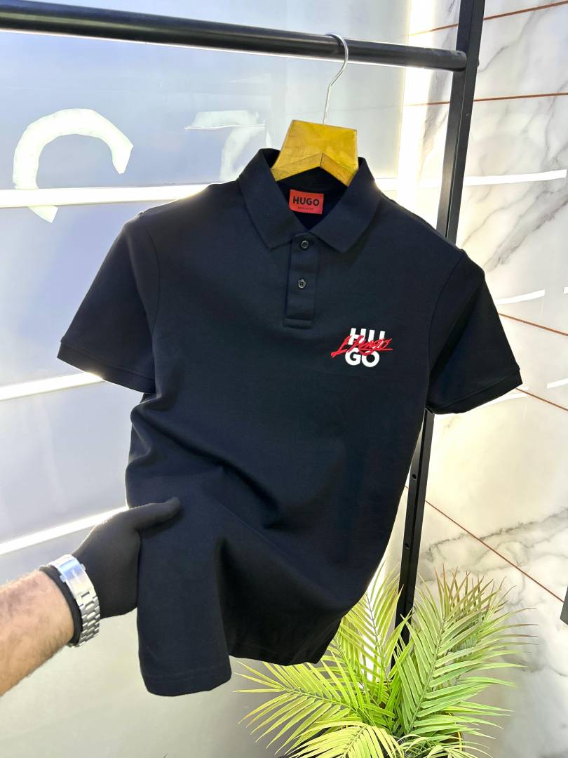 Hugo_Boss Black Polo Premium Collar Neck T-shirt With Brand Box Packing F2014-B2