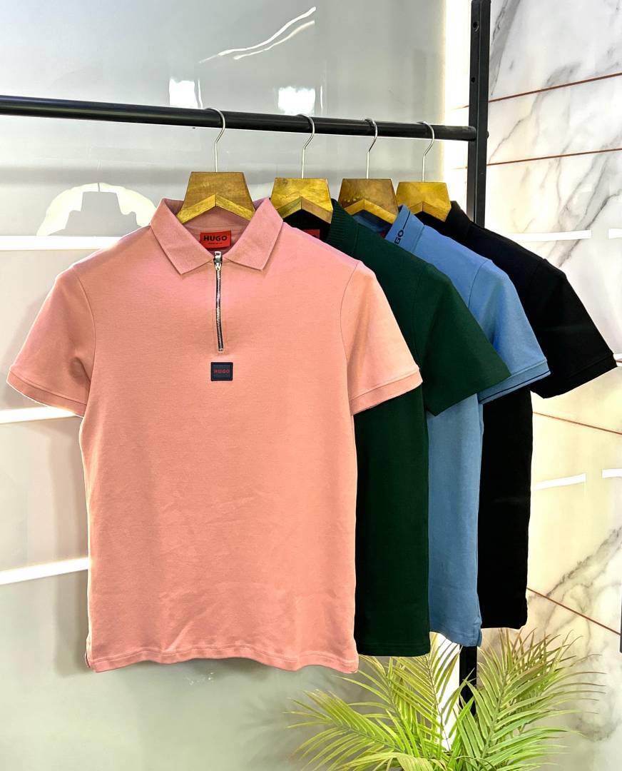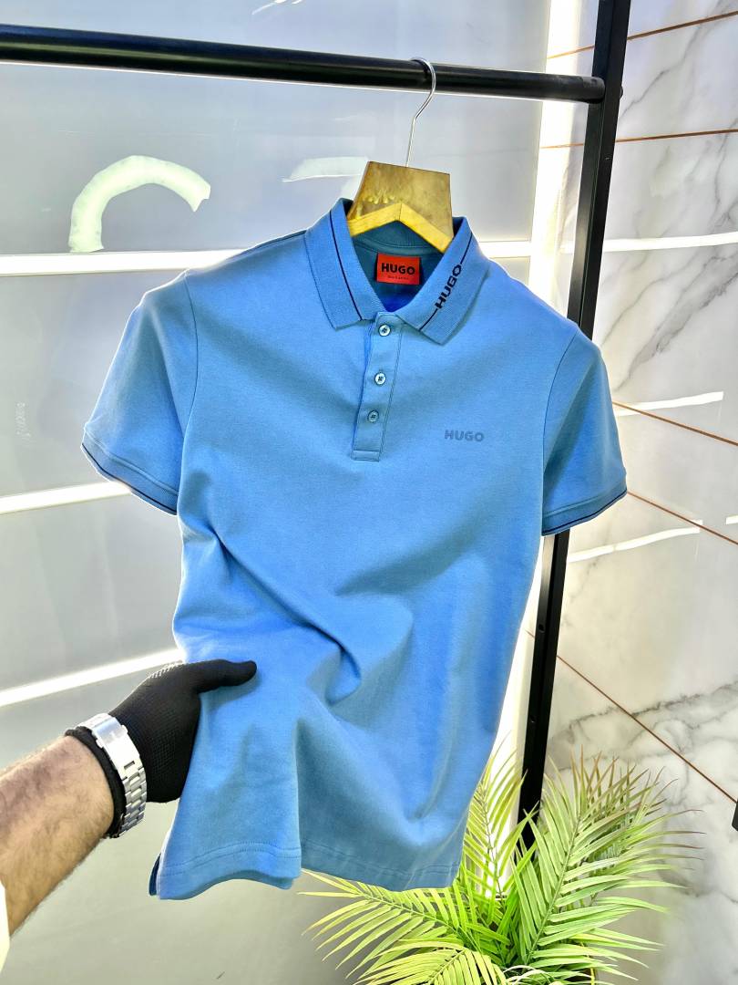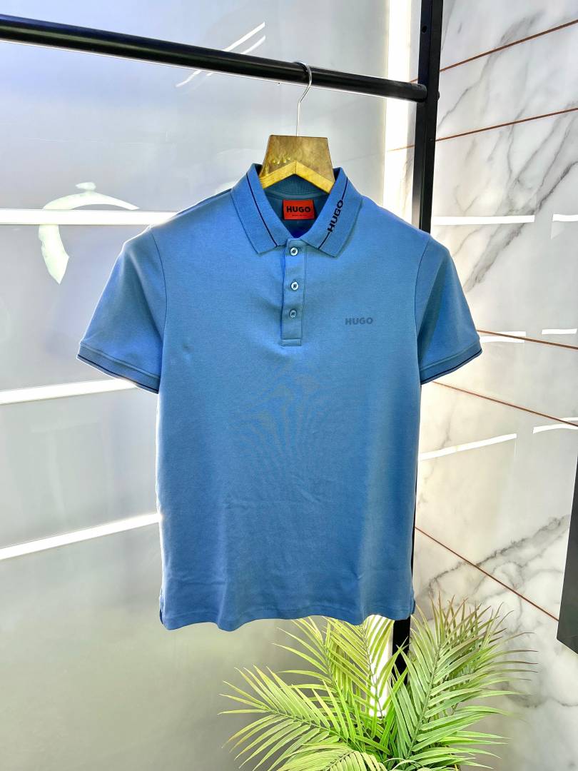 Hugo_Boss Blue Polo Premium Collar Neck T-shirt With Brand Box Packing F2014-BU
