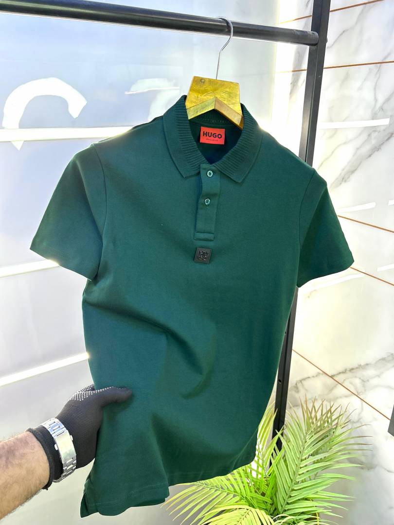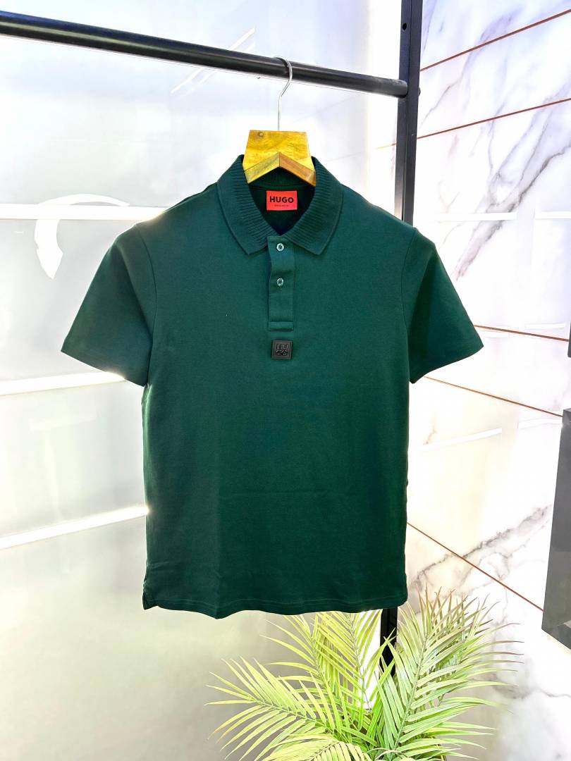 Hugo_Boss Dark Green Polo Premium Collar Neck T-shirt With Brand Box Packing F2014-DGR