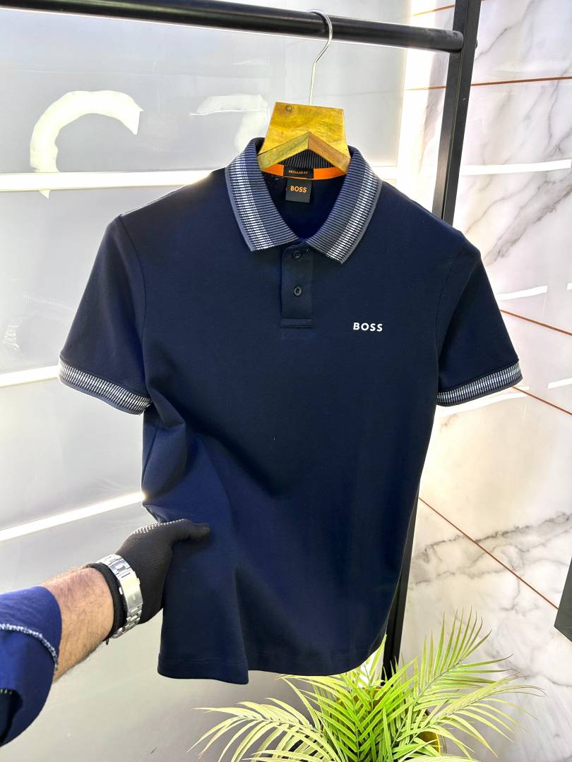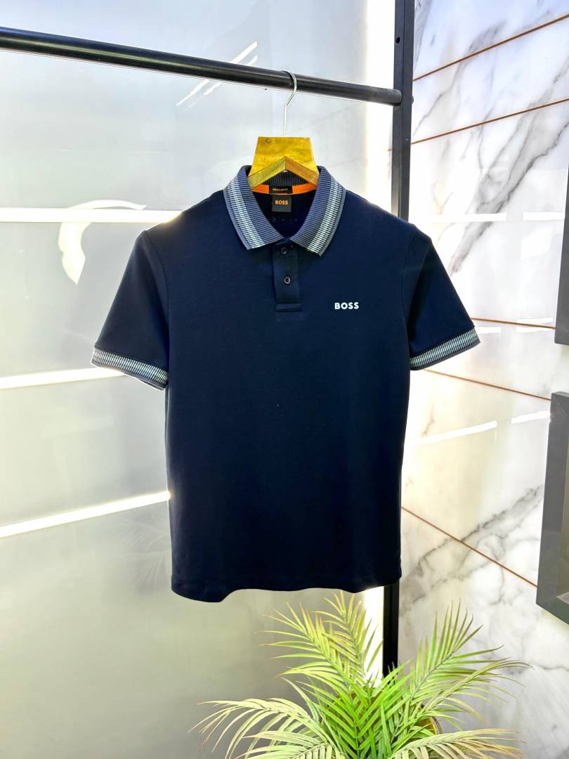 Hugo_Boss Navy Polo Premium Collar Neck T-shirt F2651-N1