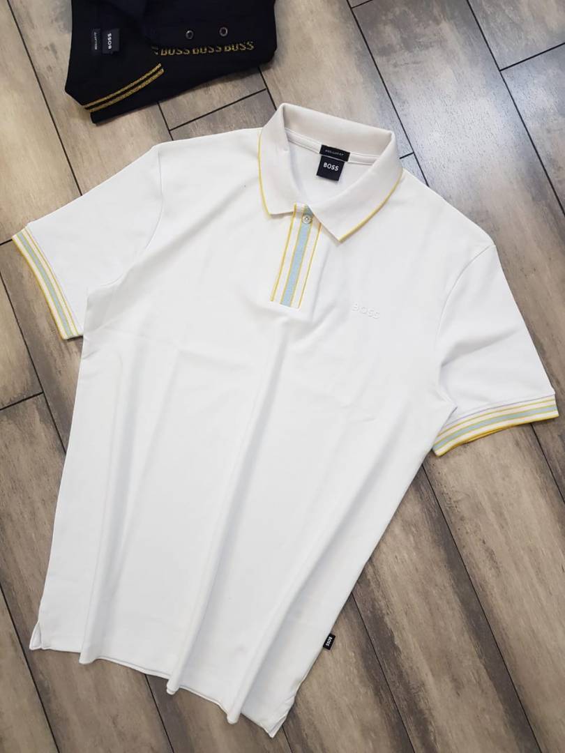 Hugo_Boss White Polo Premium Collar Neck T-shirt F2651-W2