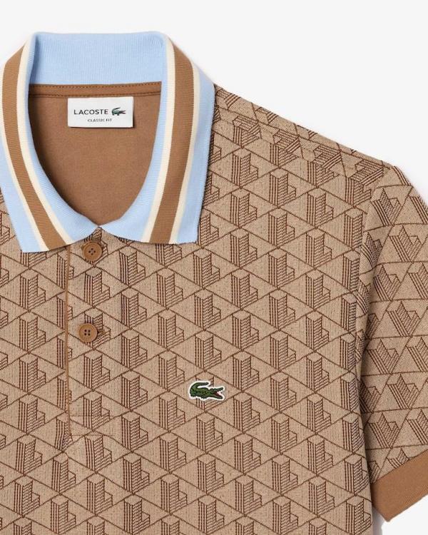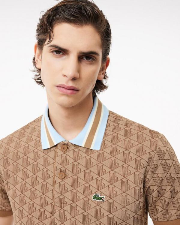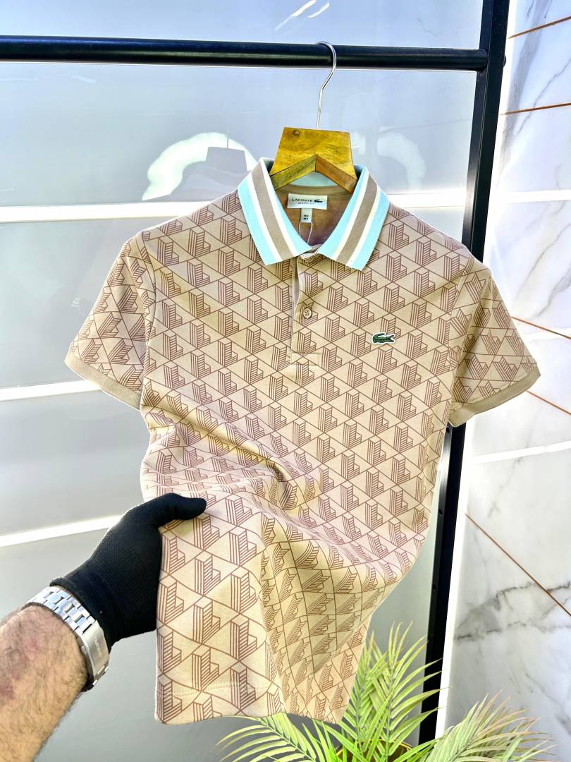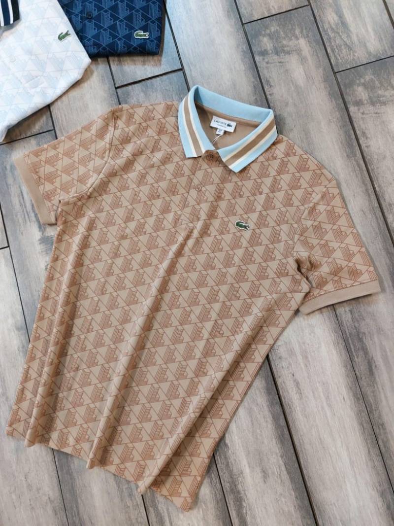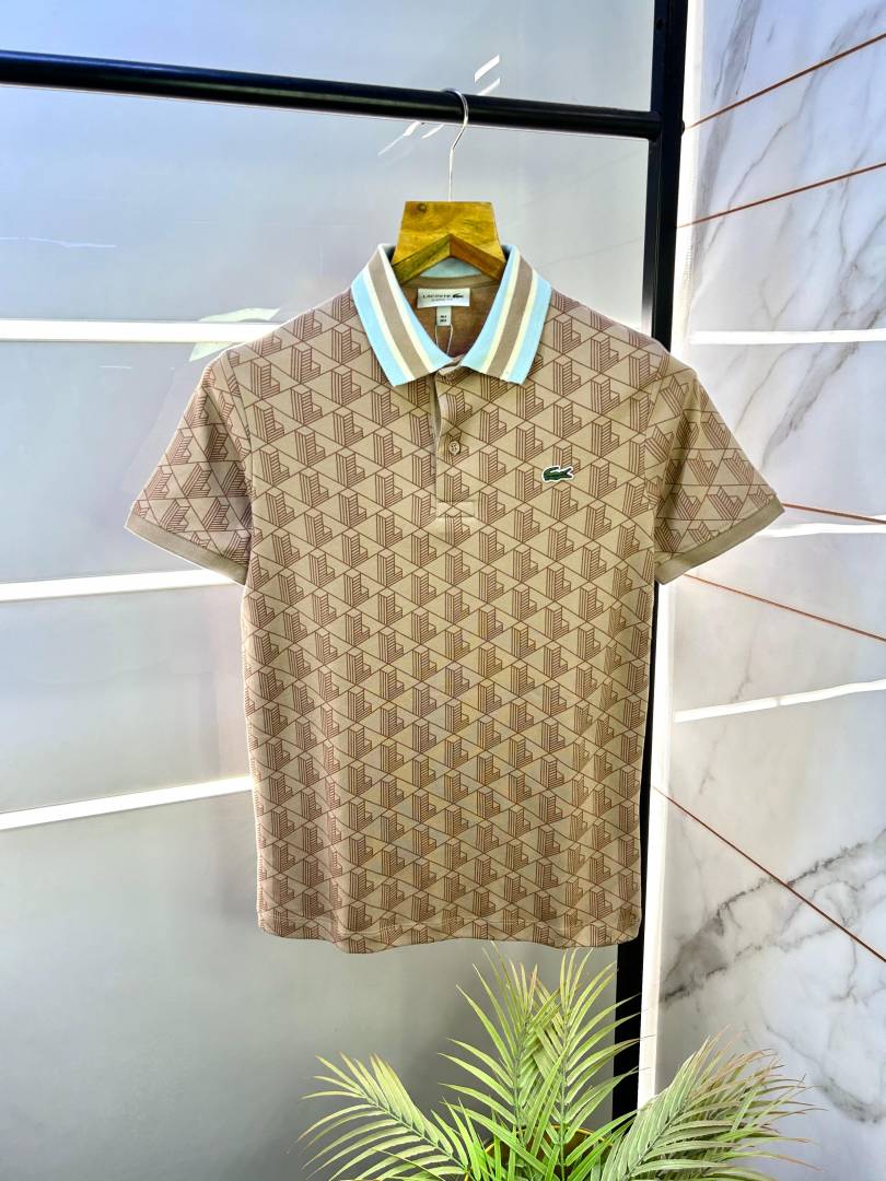 Lacost e Beige Monogram Polo Premium Collar Neck T-shirt F3053-BE