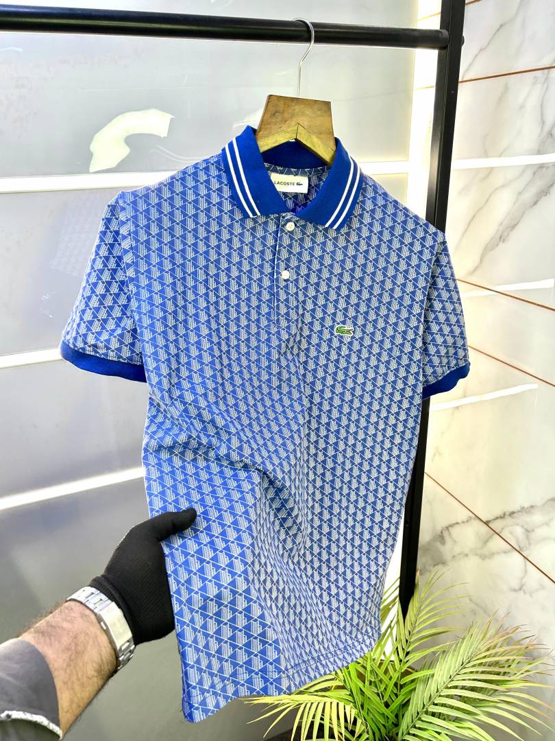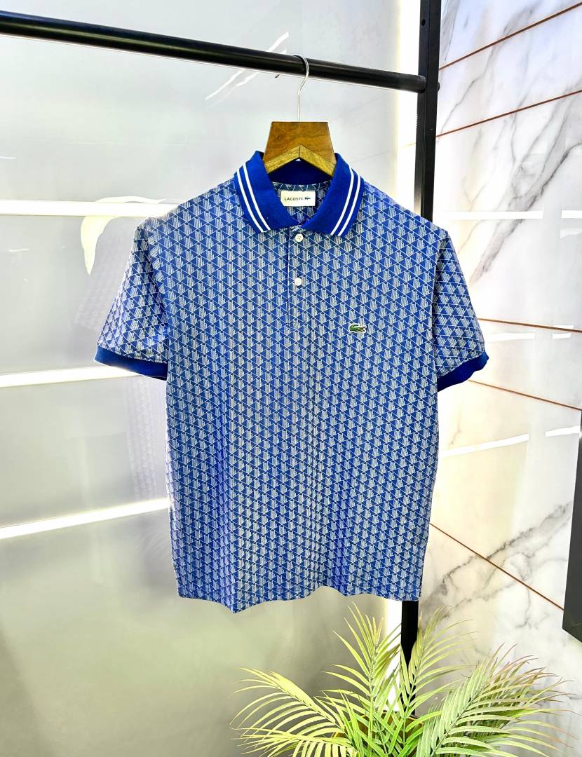 Lacost e Blue Monogram Polo Premium Collar Neck T-shirt F2797-BU