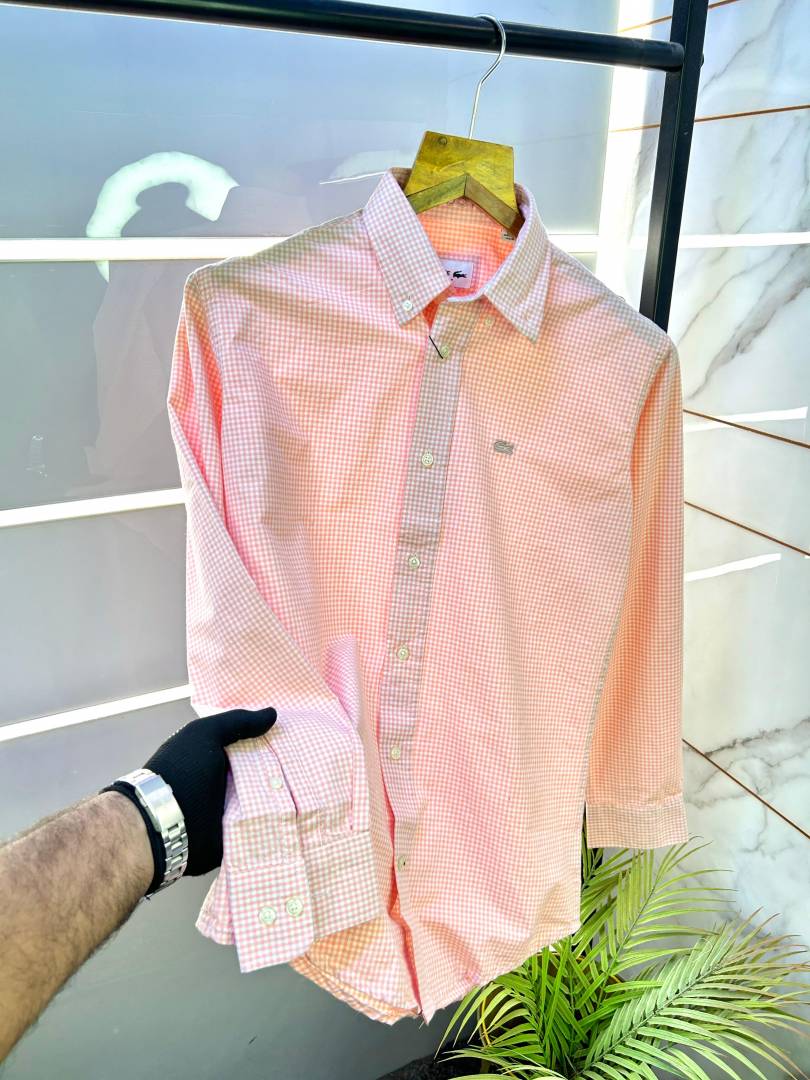 Lacost e Orange Oxford Lycra Premium Checks Shirts F2706-OR