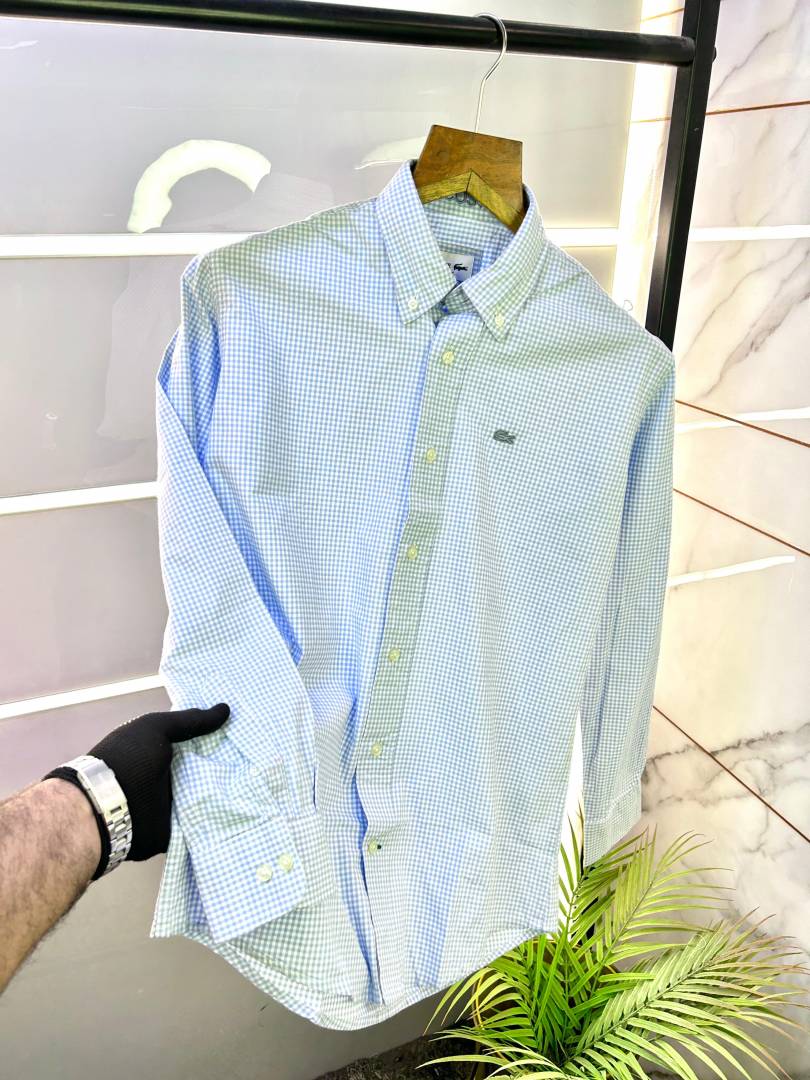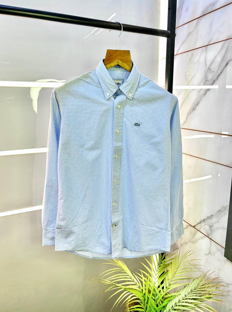 Lacost e Blue Oxford Lycra Premium Checks Shirts F2706-BU