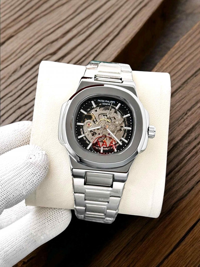 PATEK PHILIPPE AUTOMATIC SKELETON SILVER BLACK DIAL