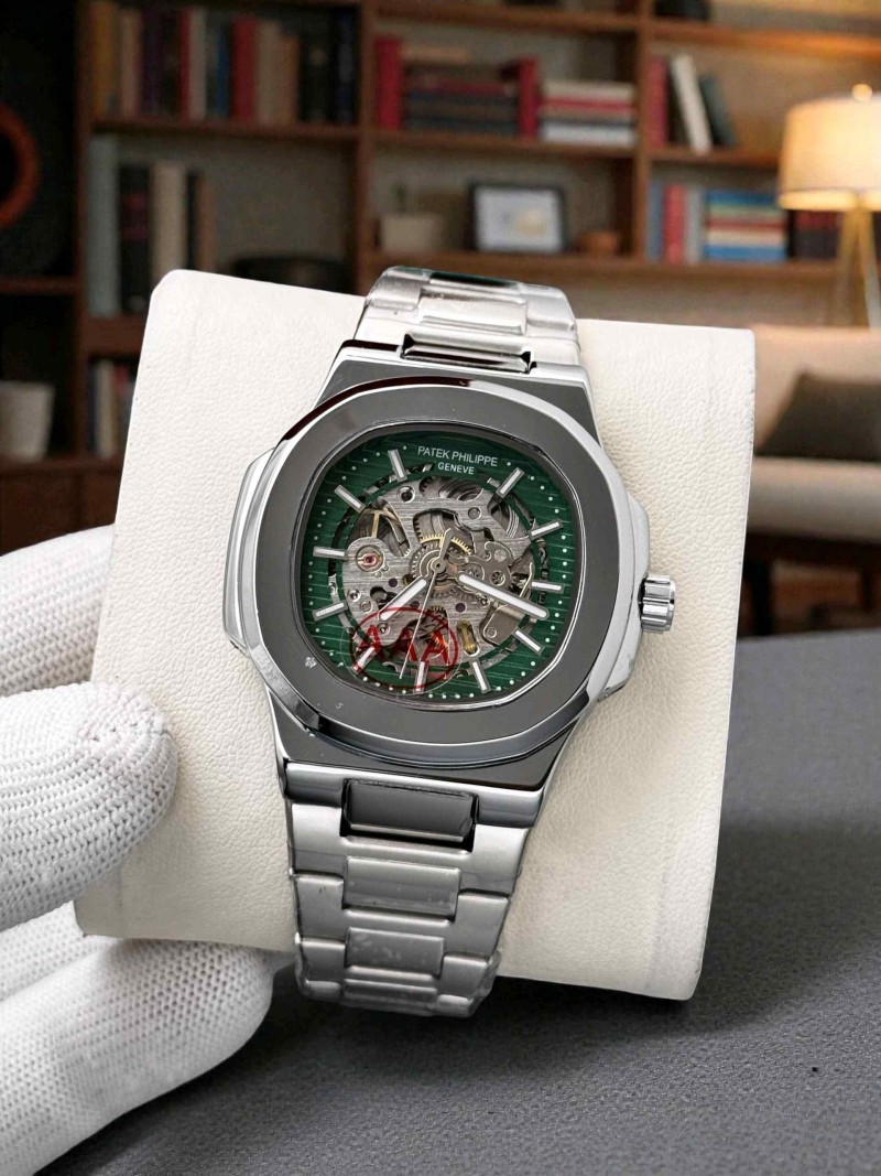 PATEK PHILIPPE AUTOMATIC SKELETON SILVER GREEN DIAL