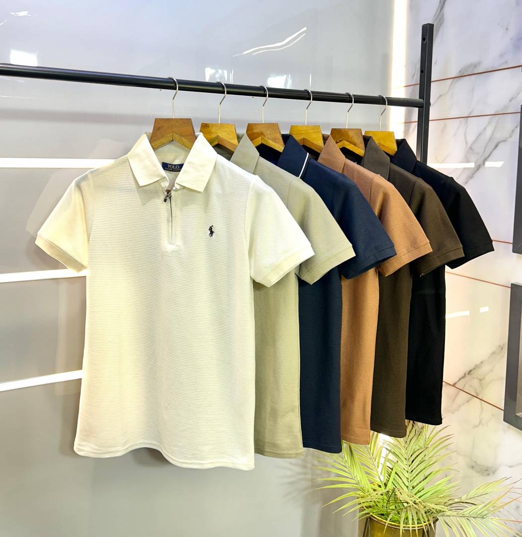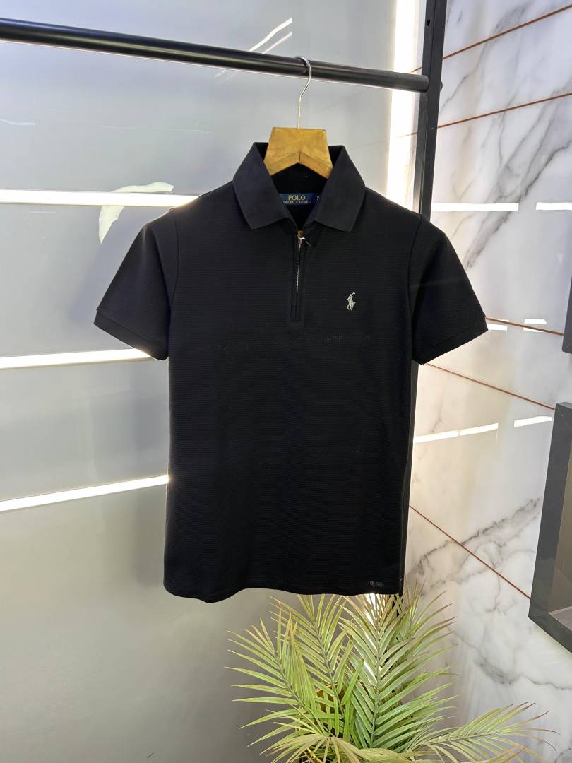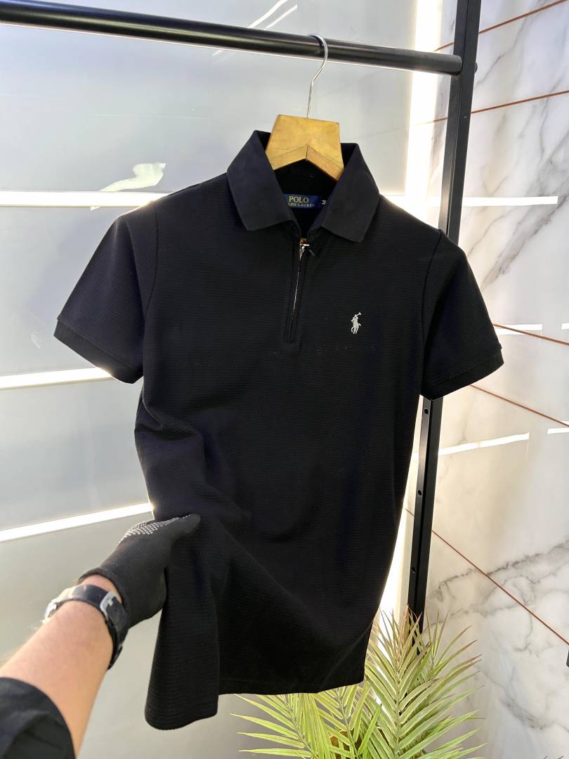 Ralph_Lauren Polo Knitted Black Zipper Premium Collar Neck T-shirt F2525-BL
