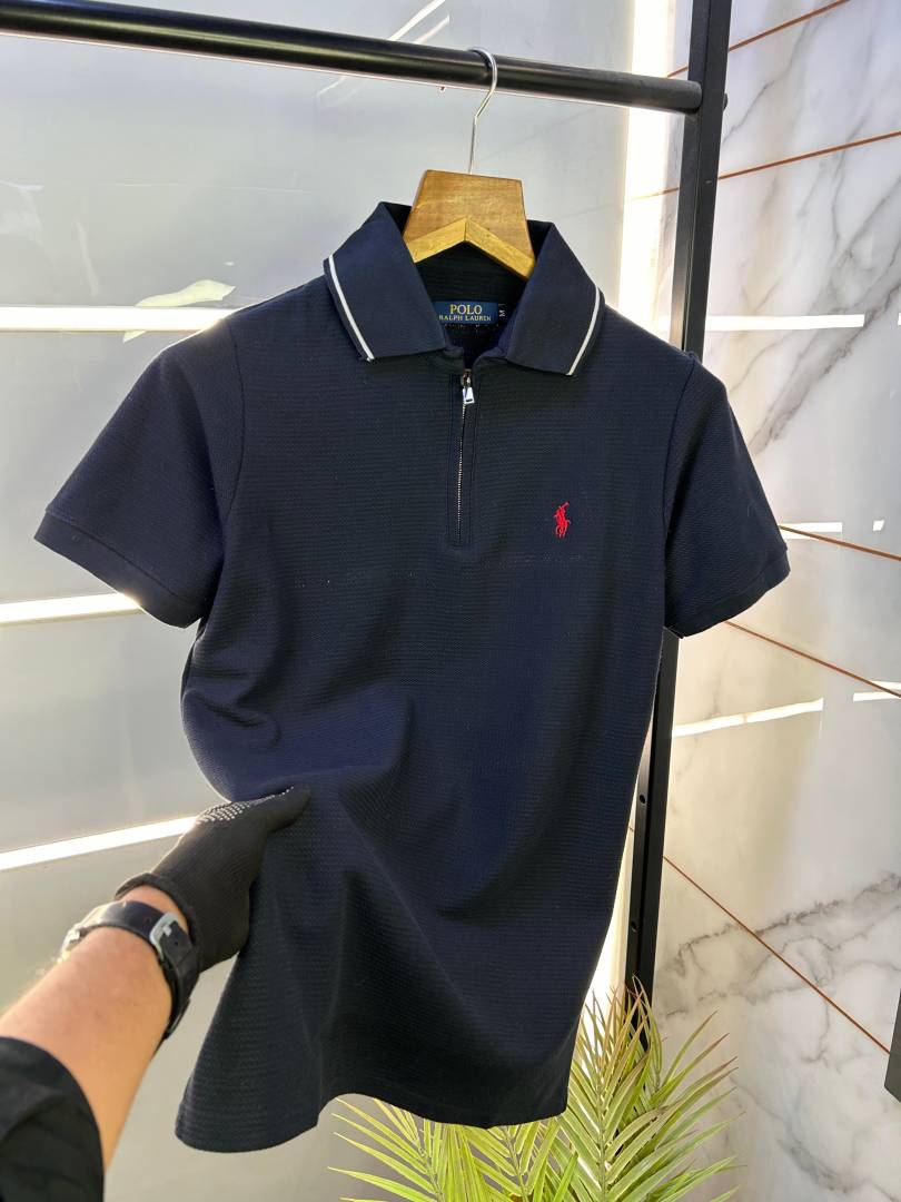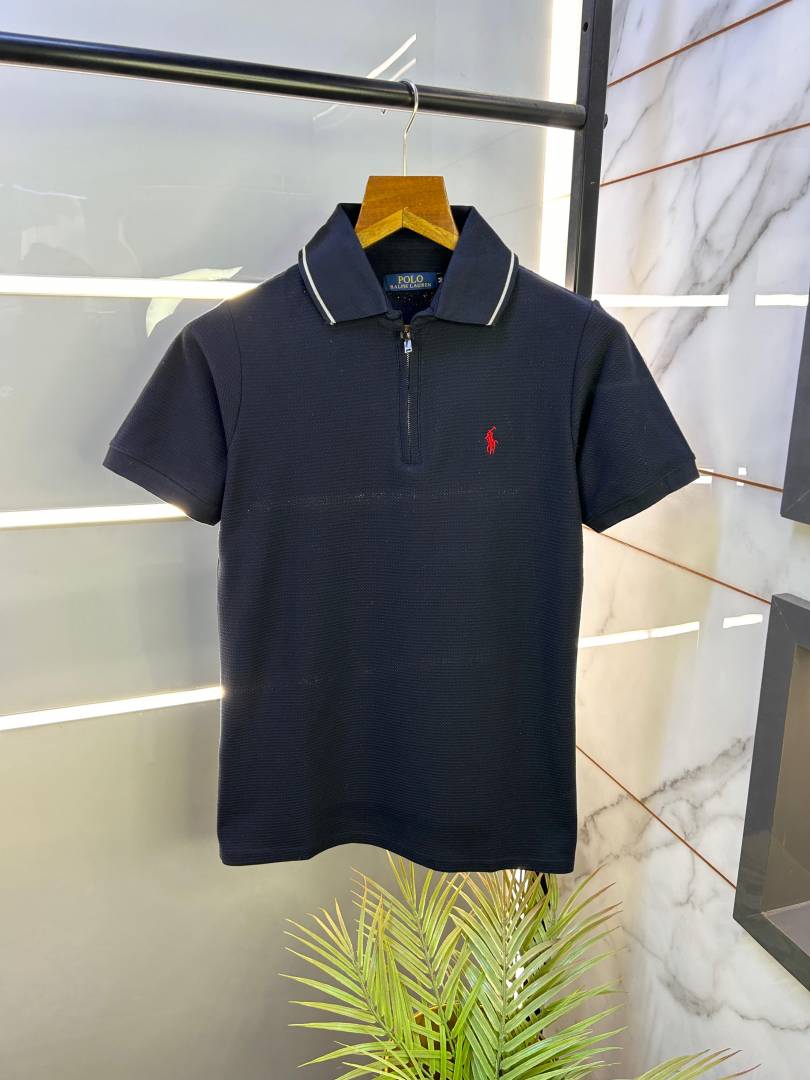 Ralph_Lauren Polo Knitted Navy Zipper Premium Collar Neck T-shirt F2525-NY