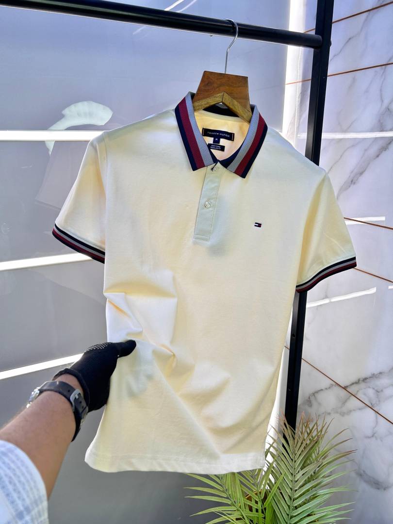 Tommy_Hilfiger Cream Polo Premium Collar Neck T-shirt F2594-CR