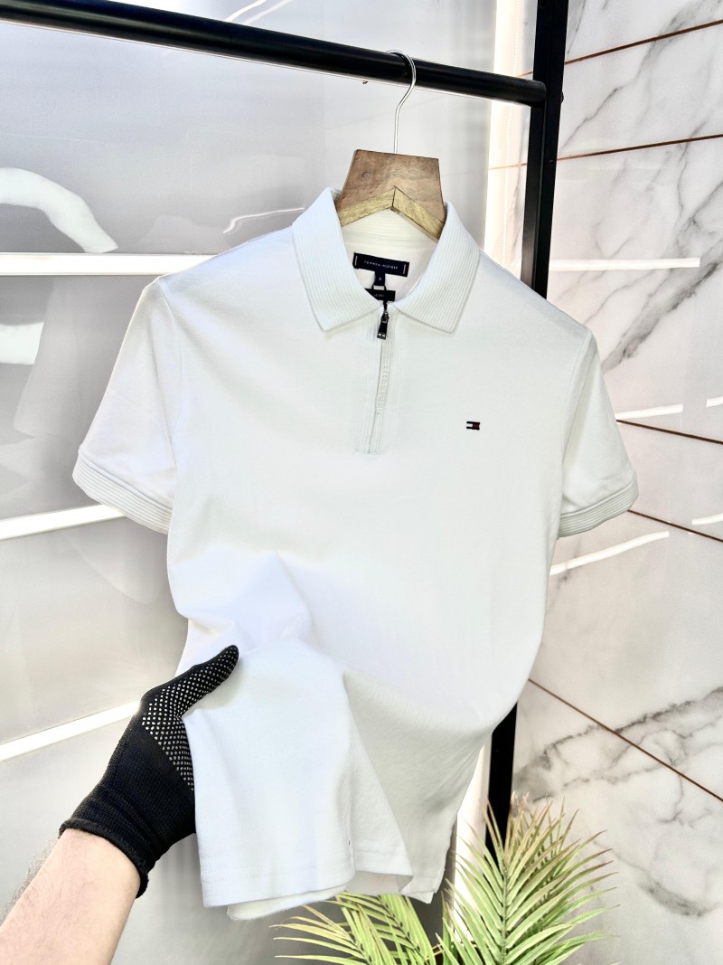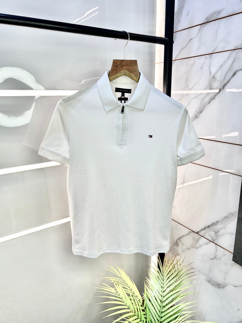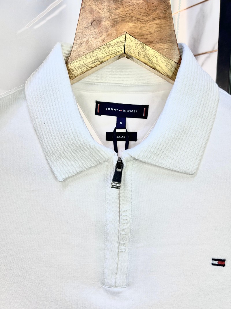Tommy_Hilfiger Zipper Polo Neck Premium Collar T-shirt WHI-S-1826