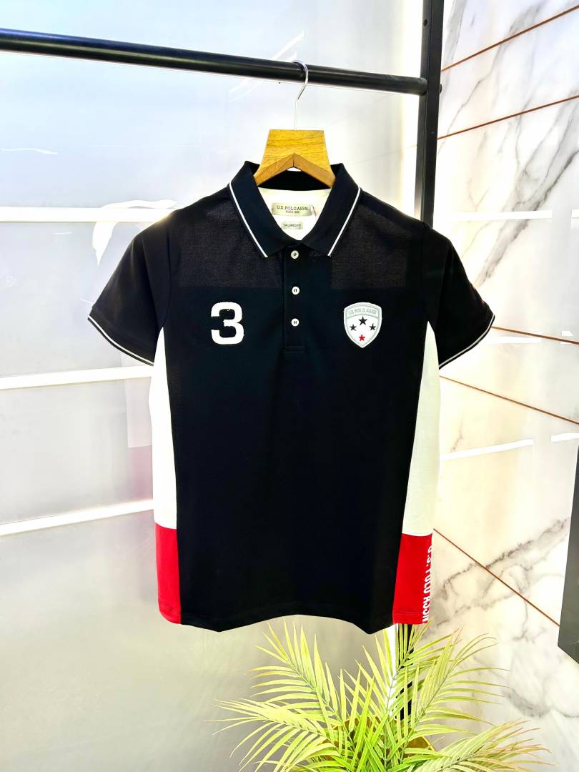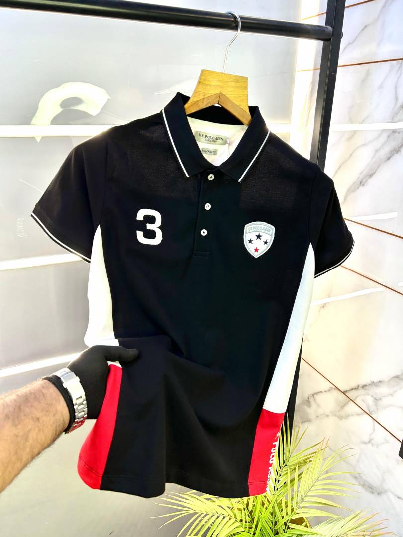 Us Polo Black Premium Embroidery Logo Collar Neck T-shirt F2683-BL
