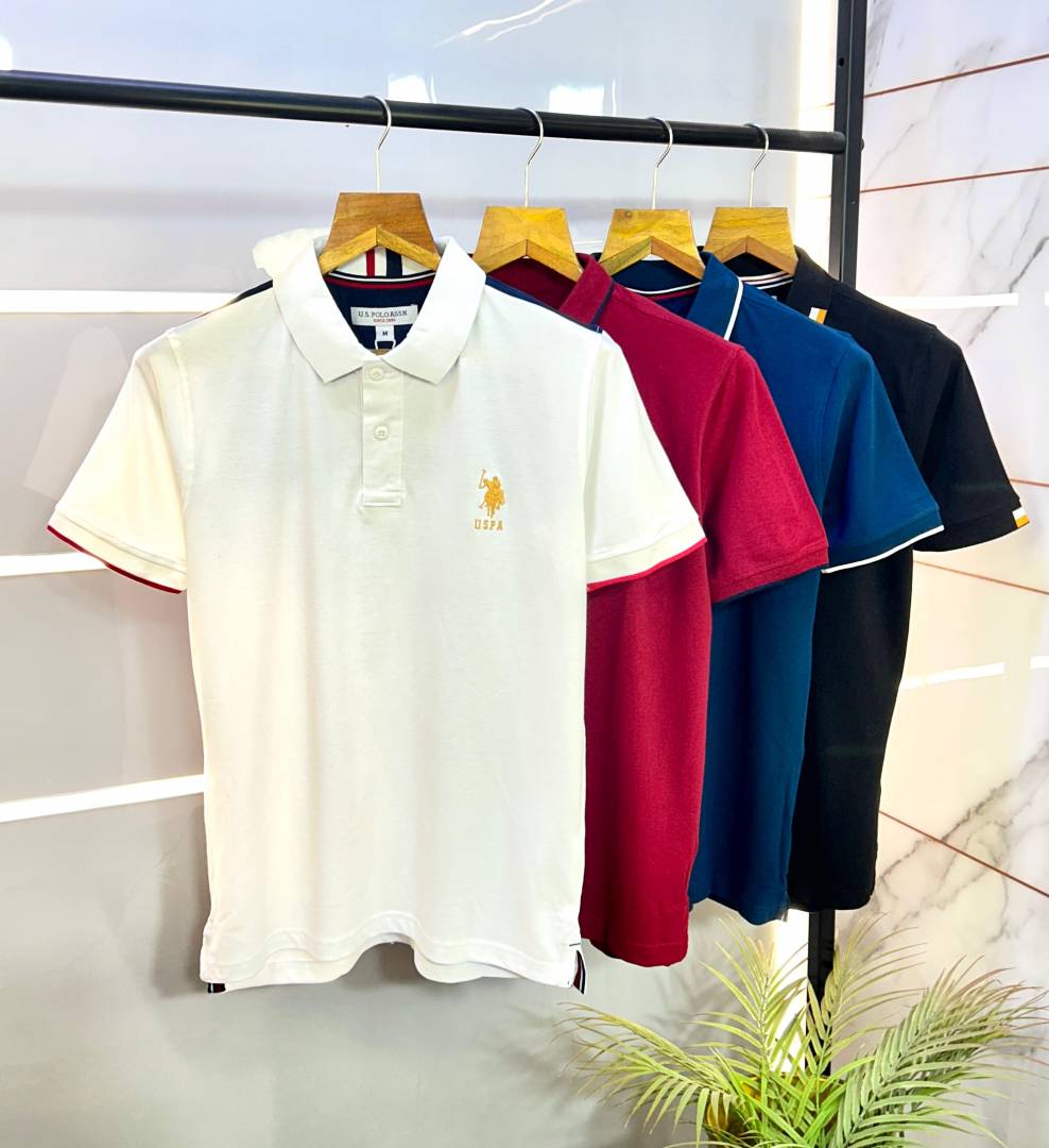 Us Polo White Back Printed Collar Neck Premium T-shirt F2837-WH