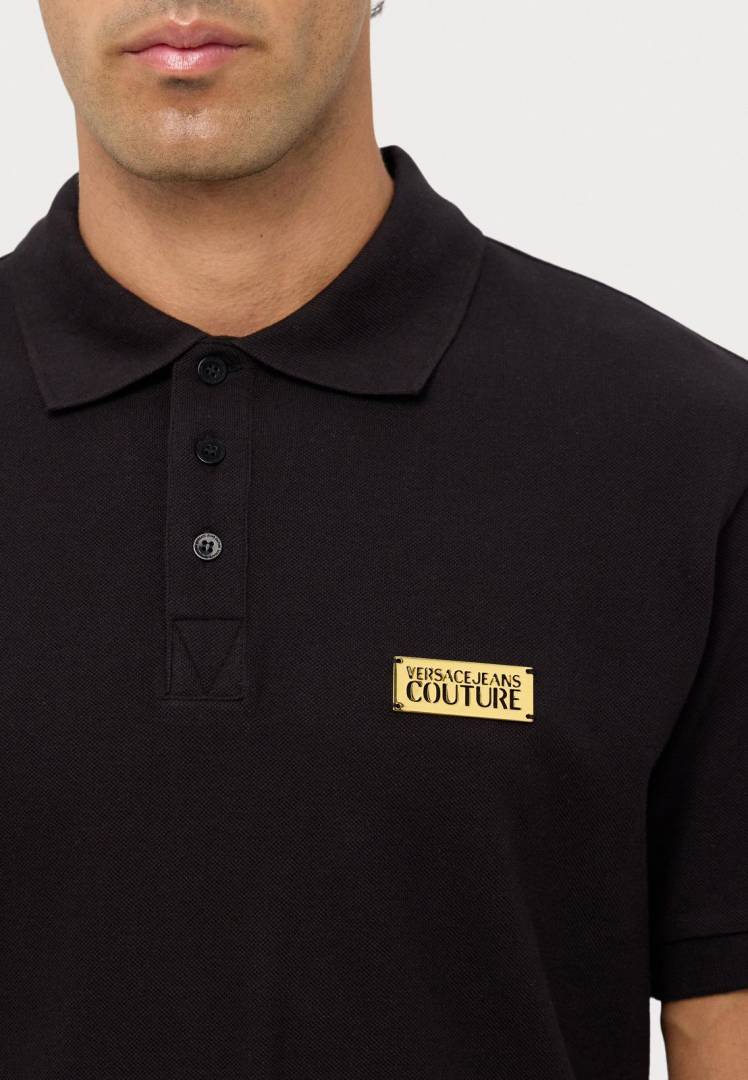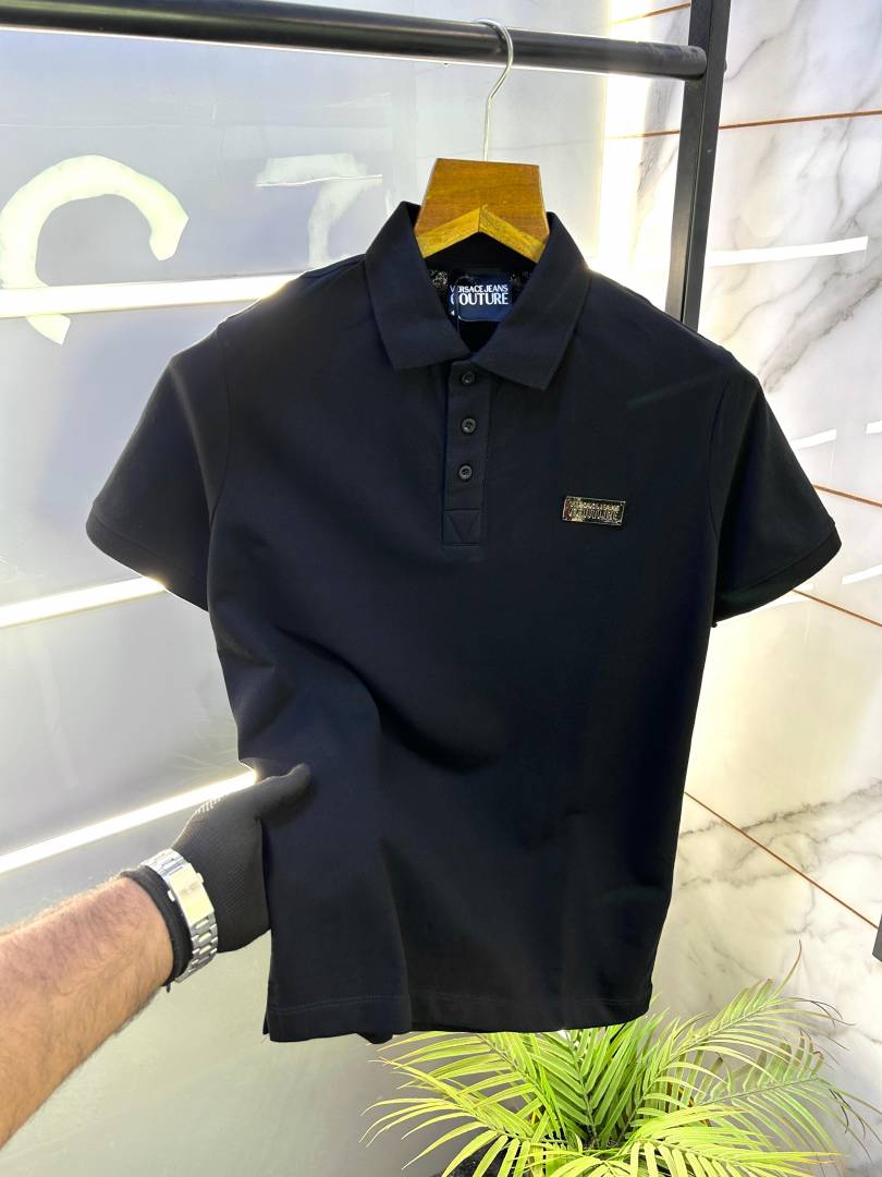 Versace Black Imported Metal Logo Collar Neck Premium Polo T-shirt F2638-BL