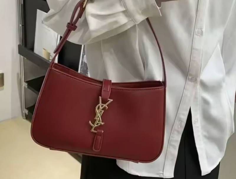 Ysl Yves Saint Laurent Hobo Shoulder Bag With Box And Dust Bag (Maroon) (F-862)